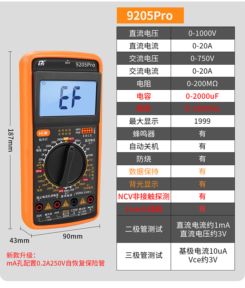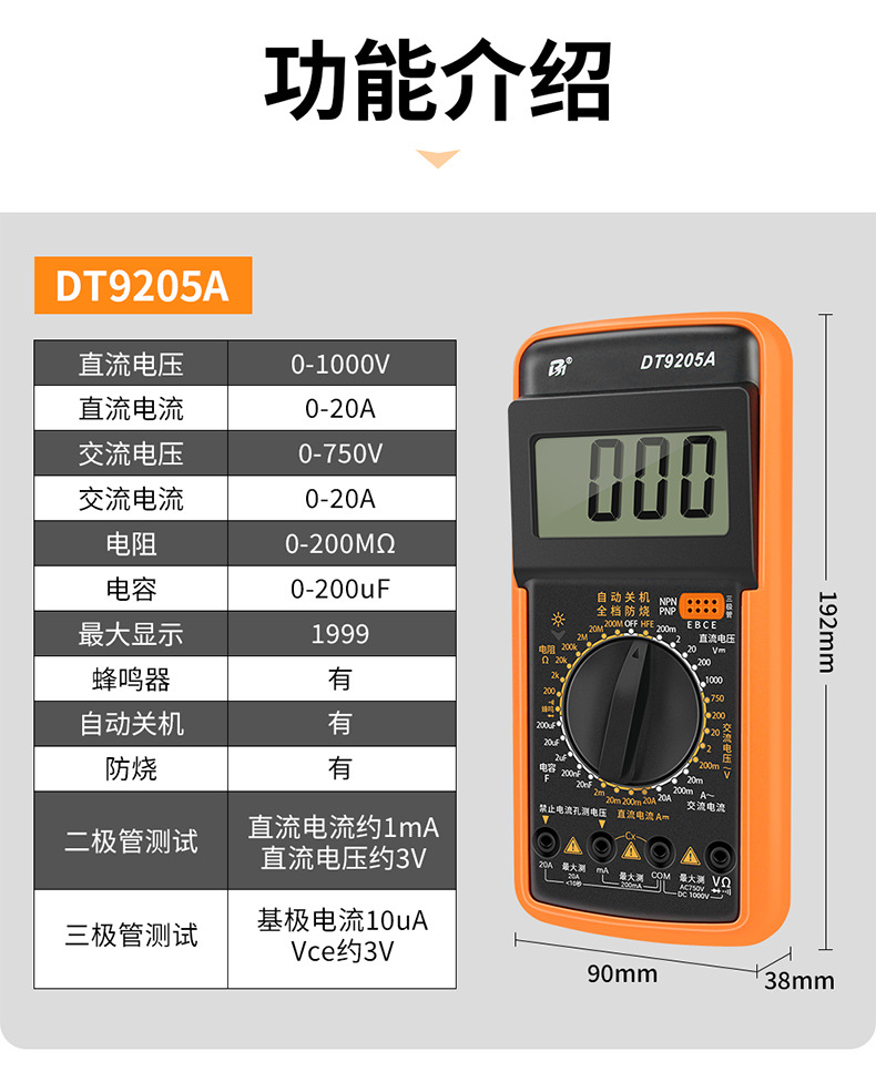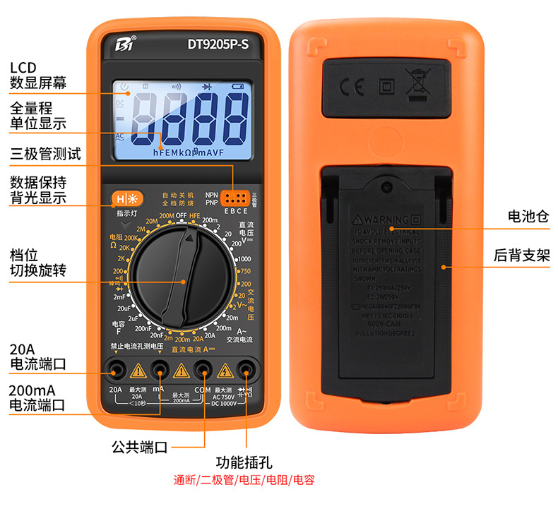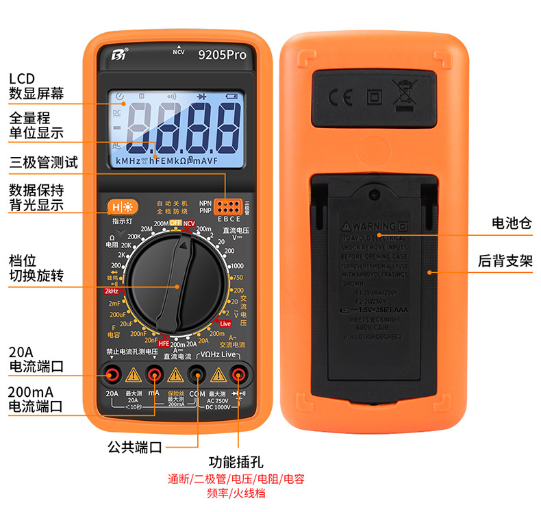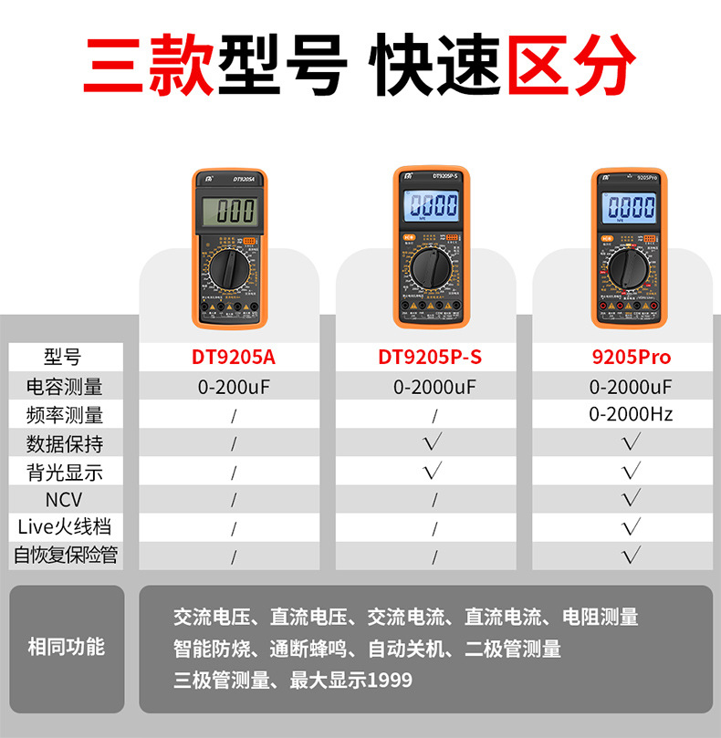 Мультиметр цифровой дисплей Высокая точность антигорения универсальный метр DT9205A 9205P-S 9205PRO