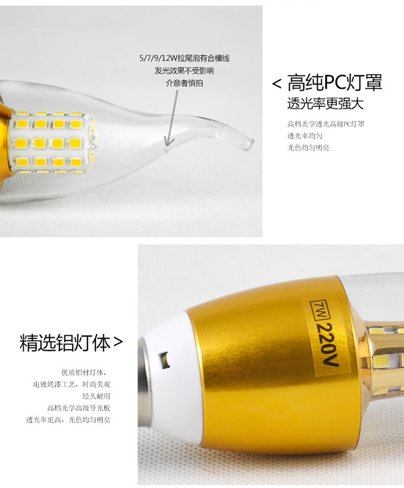 Светодиодная свеча лампа E27 маленькая лампа с винтовым наконечником тянуть хвост Источник Света Бытовая небольшая мощность E14 Энергосберегающая Свеча лампа оптом