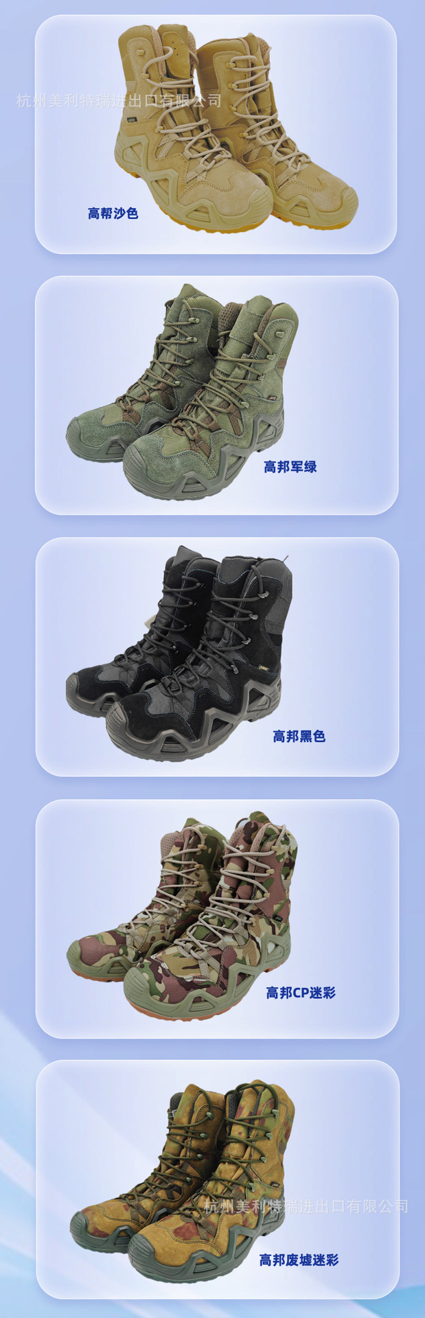 Центральная банда; Чжунбанг черный; CP камуфляж; Чжунбан Каки; Гао Банг Каки; Высокая банда зеленый; Высокий черный; Высокий CP Камуфляж; Низкий цвет песка; Низкая банда зеленый; Низкий черный; Низкий CP камуфляж; Низкий камуфляж руины; Руины камуфляжа; Камуфляжный камуфляж