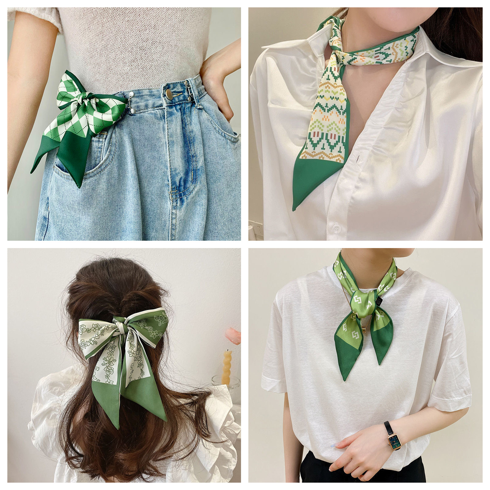 (Индивидуальный) Модный шелковый шарф, галстук с бантом для волос, головной убор, маленький свежий женский тонкий узкий ободок для волос, Лента Весна и осень