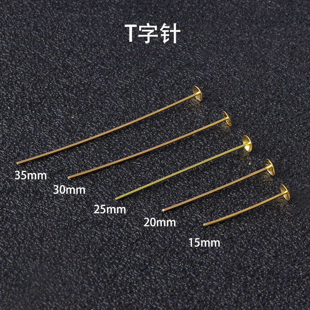 产品名称:18K金9字针T字针封底配件光面托盘针珍珠玉石通孔珠专用长款堵头
