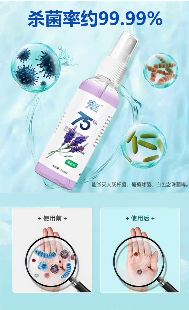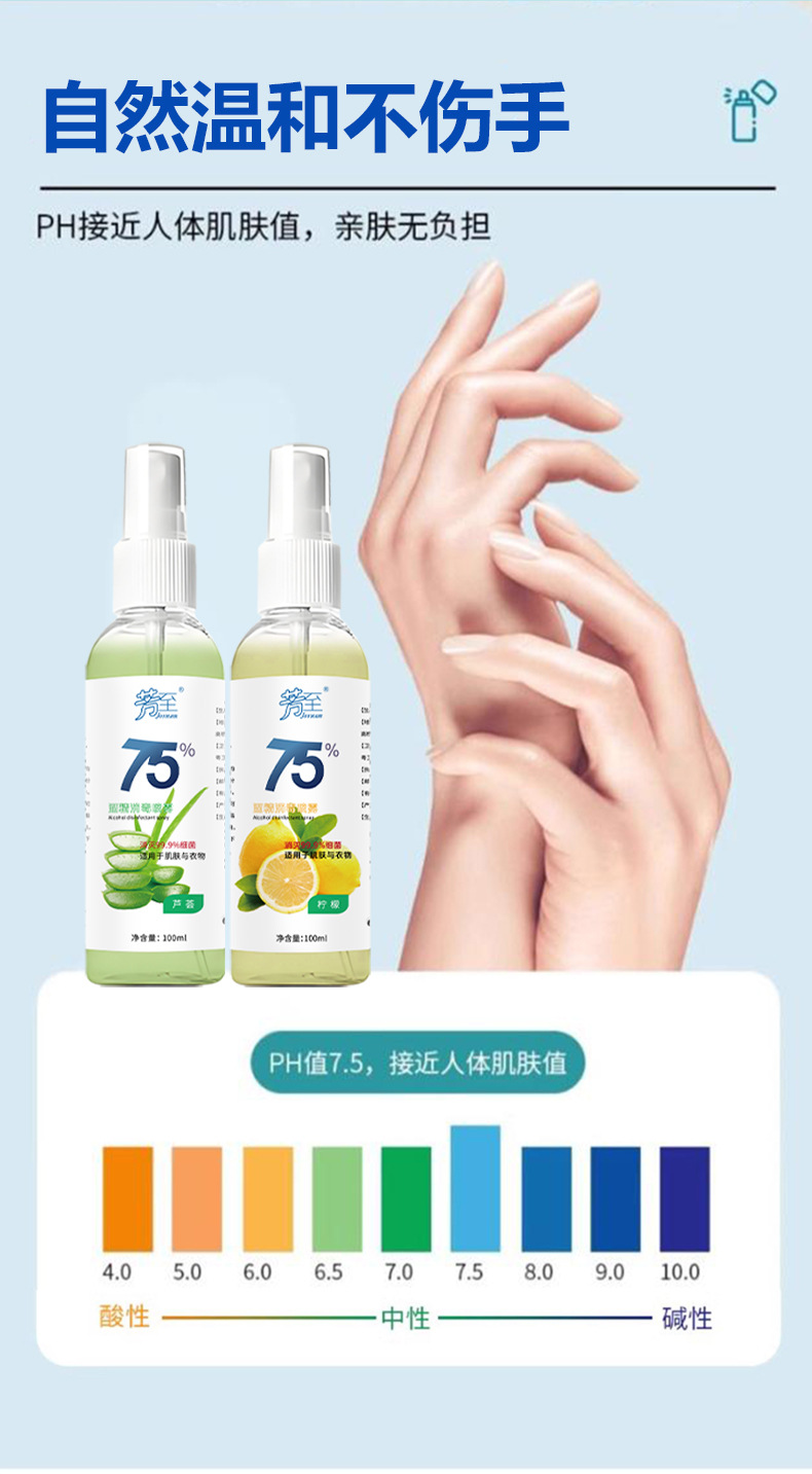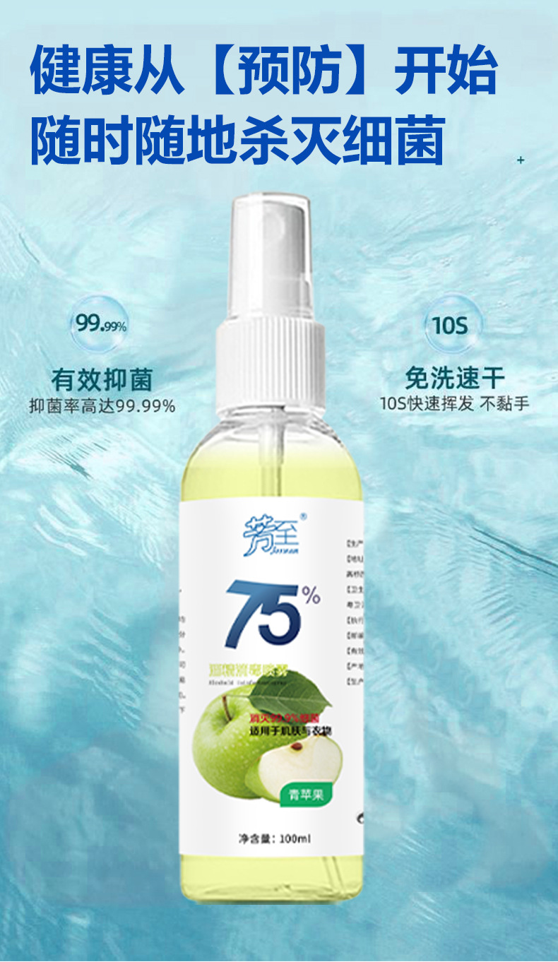 Спрей с 75% спиртом, быстросохнущий, с алоэ вера, лимоном, зеленым яблоком, лавандой, дезинфицирующее средство для рук, спиртовой дезинфектор.