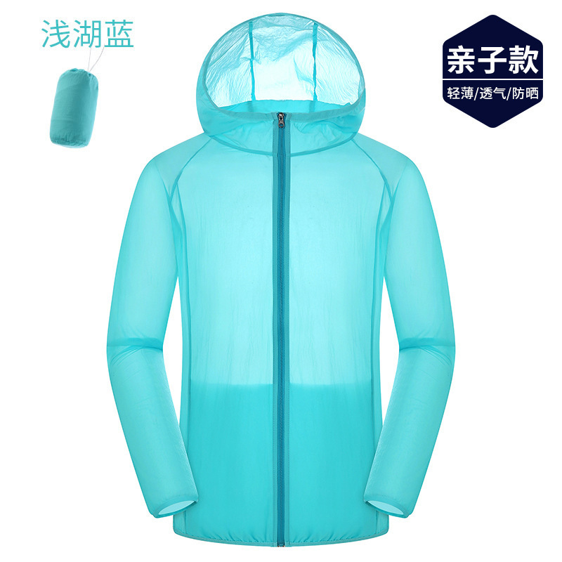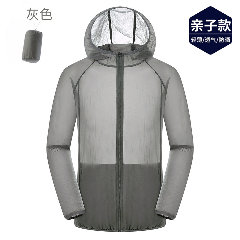 Уличная летняя Солнцезащитная одежда Мужской и женский кожаный плащ Ультратонкий дышащий плащ для защиты от солнца для родителей и детей Детская Солнцезащитная одежда Пальто с принтом ЛОГОТИПА