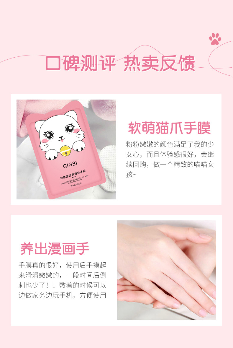 Yinmei Niacinamide Увлажняющая и омолаживающая маска для рук 40 г; Yinmei Увлажняющая и омолаживающая маска для ног с молочной кислотой 40 г; Маска для рук с ниацинамидом Levsa 40 г [Кошачий коготь]; Увлажняющая маска для ног с вазелином и молоком Yimei, 50 г