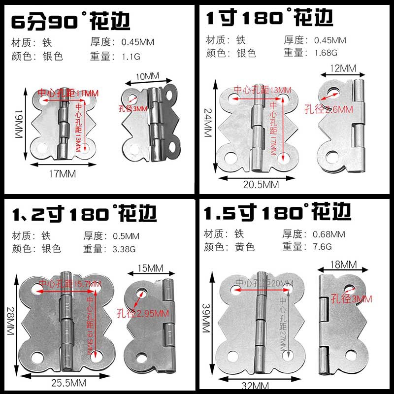 Limei 6 минут, 1 дюйм, 1,2 дюйма, 90 градусов, 180 градусов, кружево-бабочка, маленькая петля, шкатулка для драгоценностей, 4 отверстия, петля, петля для подарочной коробки