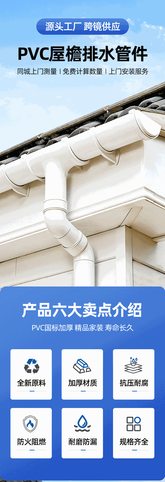 Выход ПВХ полукруглый водосточный желоб Водосточный желоб Вилла дренажная крыша Водосточный желоб Водосточная труба