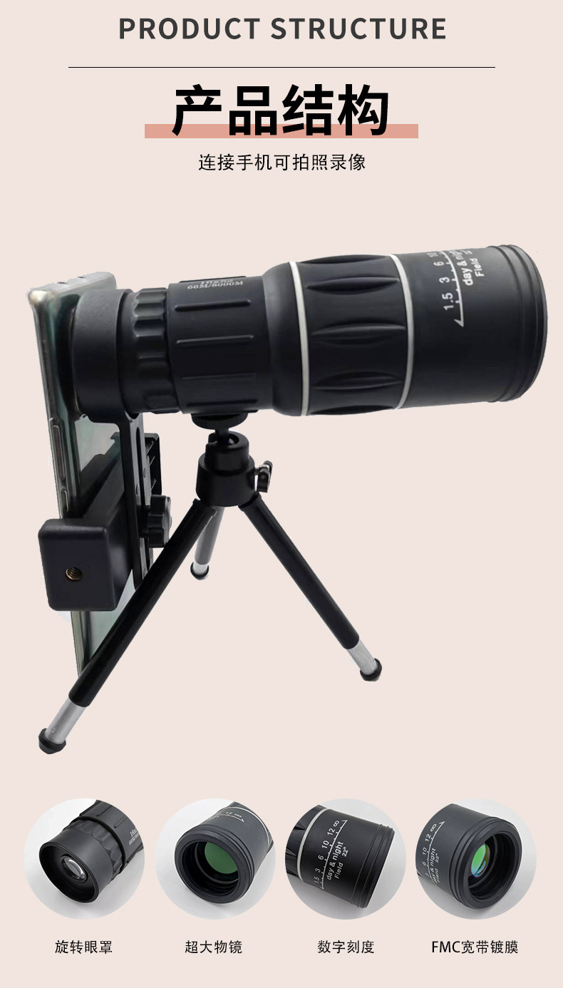 Монокулярный телескоп сверхвысокой четкости 16x52, ночное видение при слабом освещении, высокое разрешение, мощное концертное просмотровое устройство, просмотр игр, поставка из первых рук