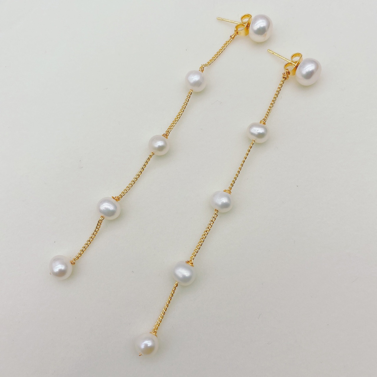 Комплект из жемчужного ожерелья и сережек из гипсофилы, комплект из четырех предметов с позолоченными украшениями, элегантные и простые украшения с длинными кисточками.