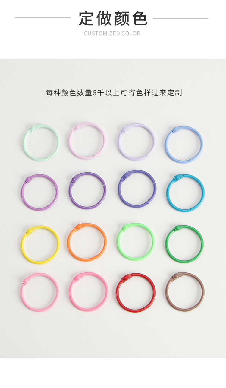 Красочный фотоальбом с металлической пряжкой, окрашенное железное переплетное кольцо, канцелярские принадлежности, открытое кольцо, брелок, кольцо с отрывными листами, кольцо для карточек
