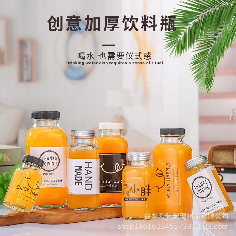 Оптовая продажа 250 ml350 ml сетка красная бутылка для напитков квадратная бутылка кофе молочный чай фруктовый сок на вынос портативная стеклянная бутылка для напитков