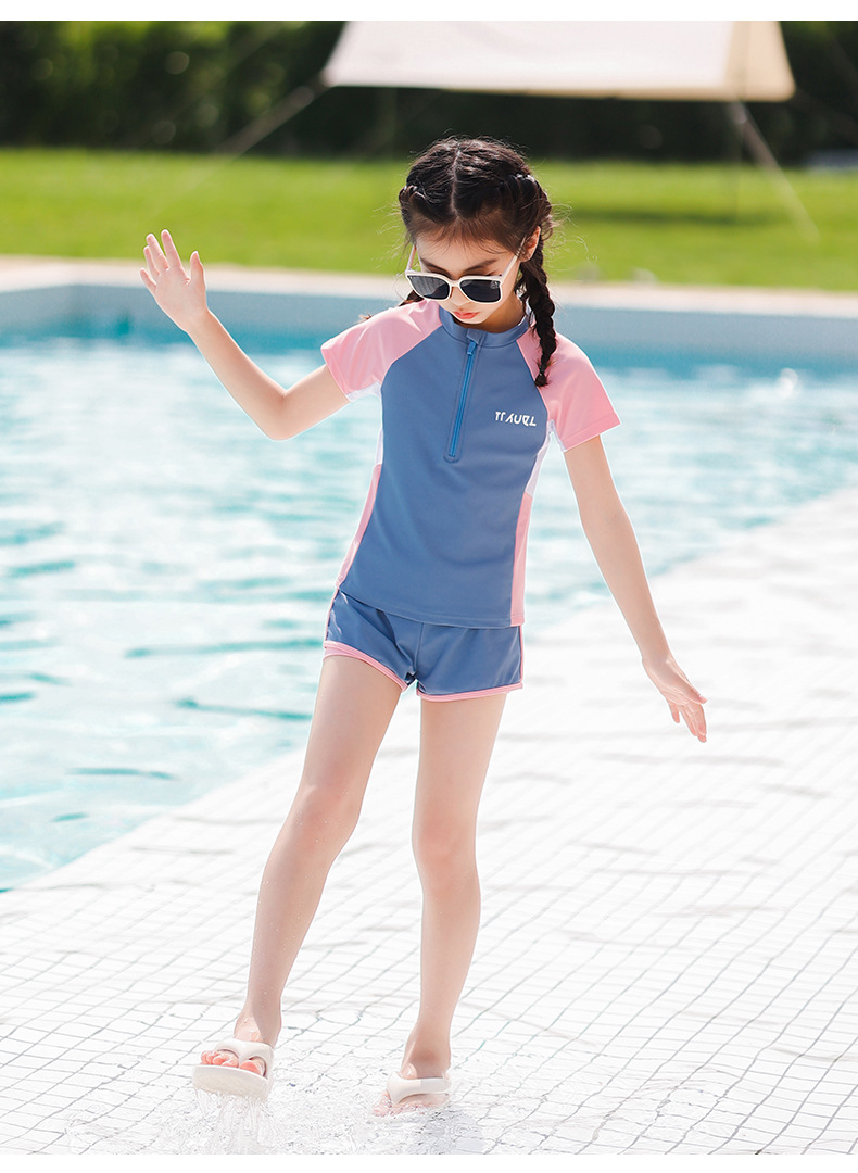 Детские купальники для девочек, новый стиль 2022, солнцезащитные купальники с разрезом, летний профессиональный купальный костюм для больших детей