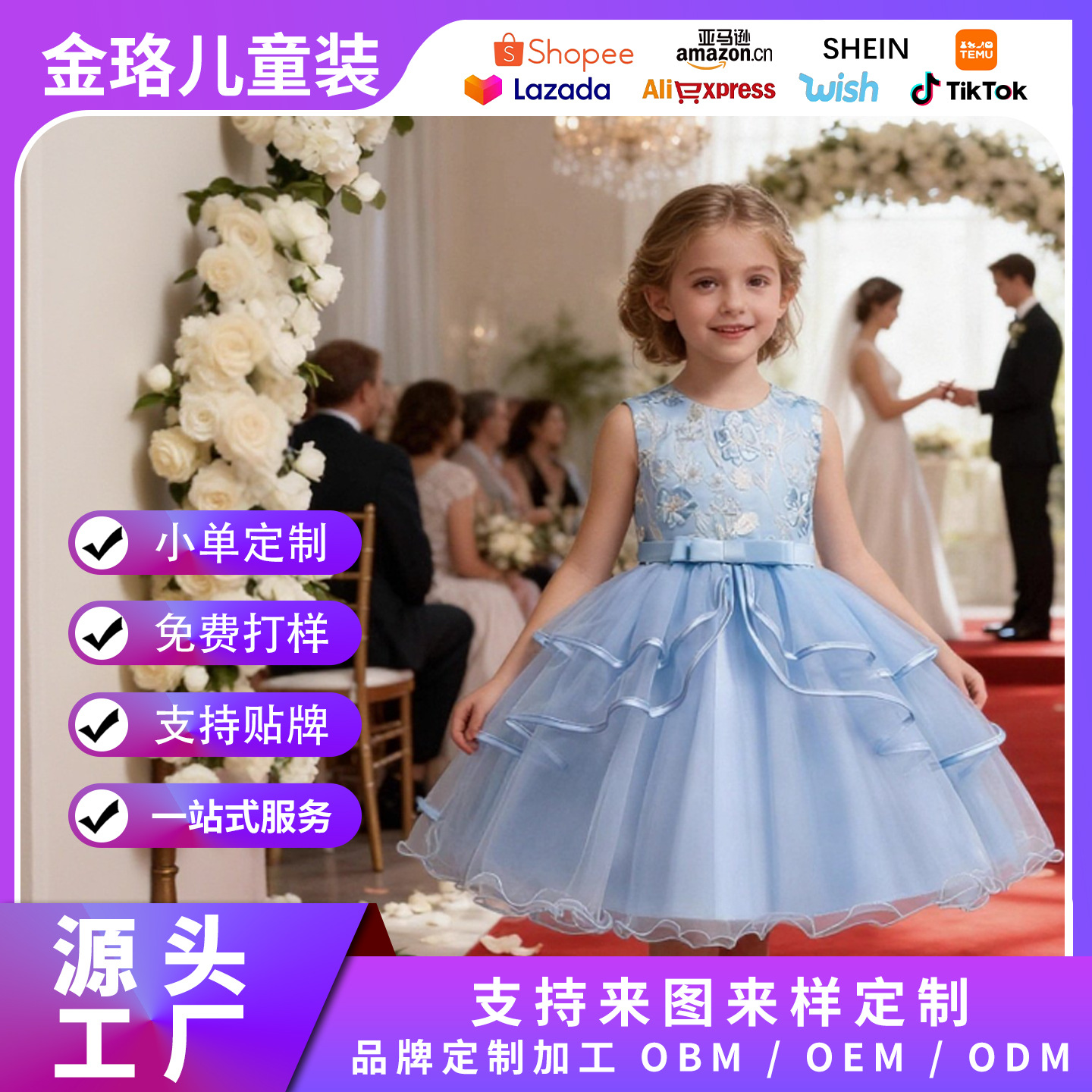 Внешняя торговля Платье для девочек Детское платье Девочка Год Рождения Девочки-цветка Год Рояля Платье принцессы