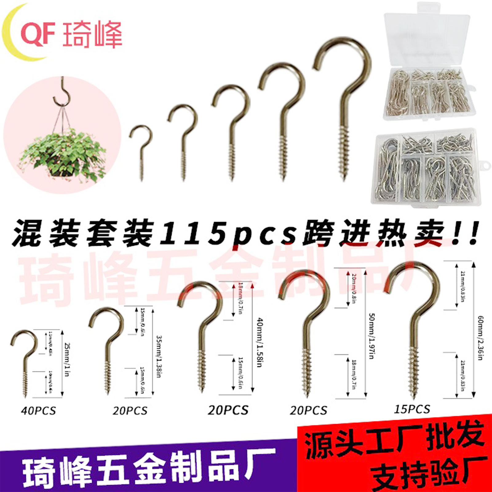 115 шт. Комбинированный костюм Amazon горячая Распродажа Открытие Крюк винт овечий глаз крюк винт глаз источник глаз Оптовая Продажа с фабрики
