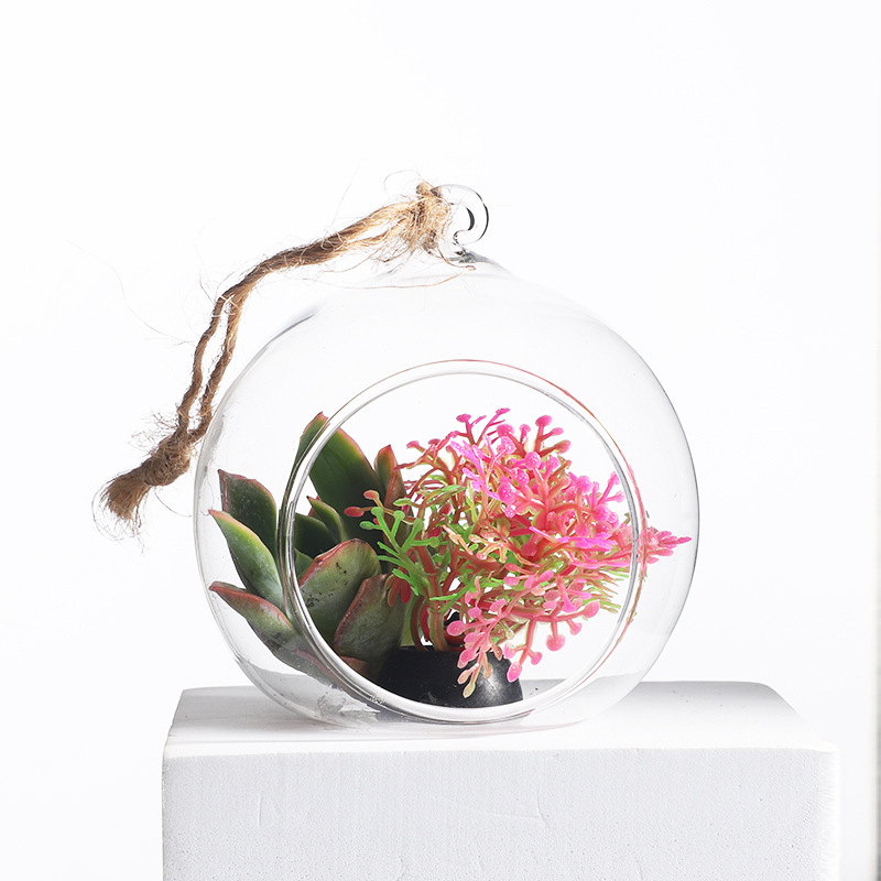 Креативная круглая стеклянная ваза Микро ландшафтный свет Роскошные украшения для дома мясистое растение железная рама подвесная ваза