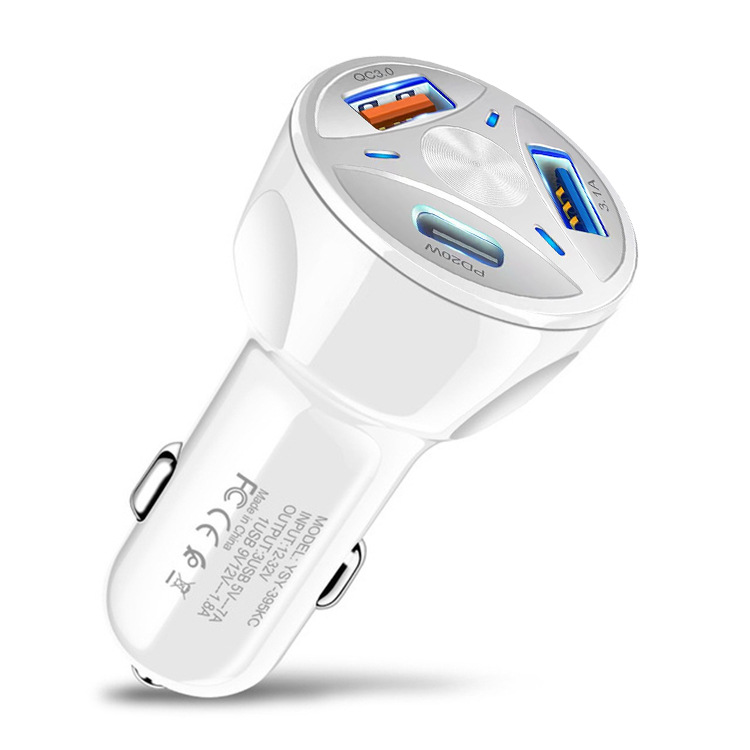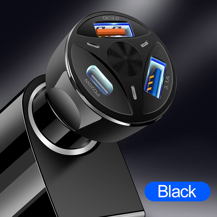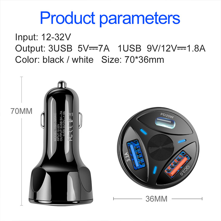 Многопортовое автомобильное зарядное устройство, двойное автомобильное зарядное устройство USB + PD, быстрая зарядка, USB + интерфейс Type-C, автомобильная зарядная головка