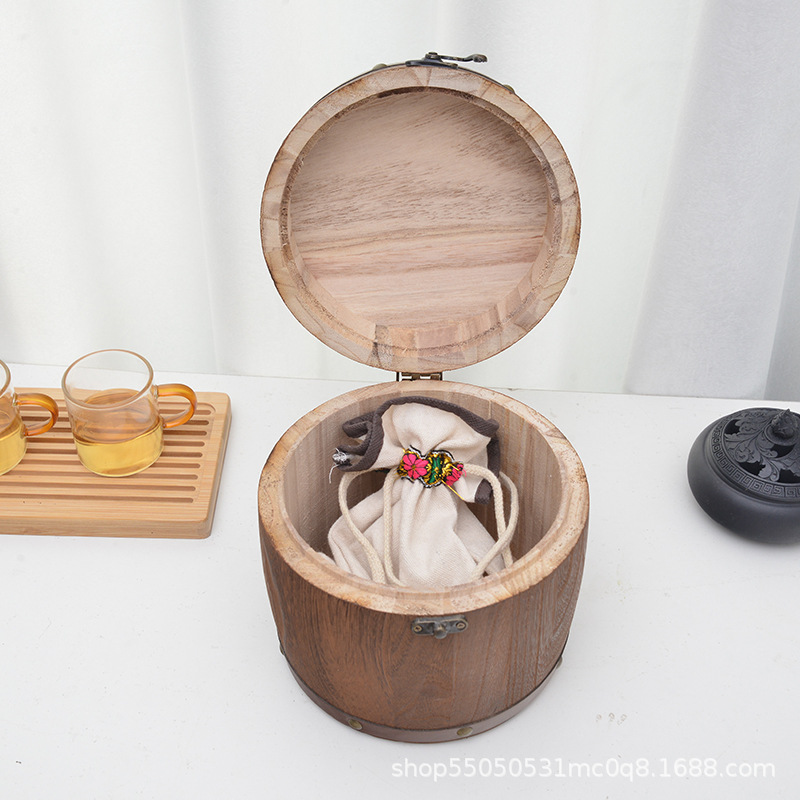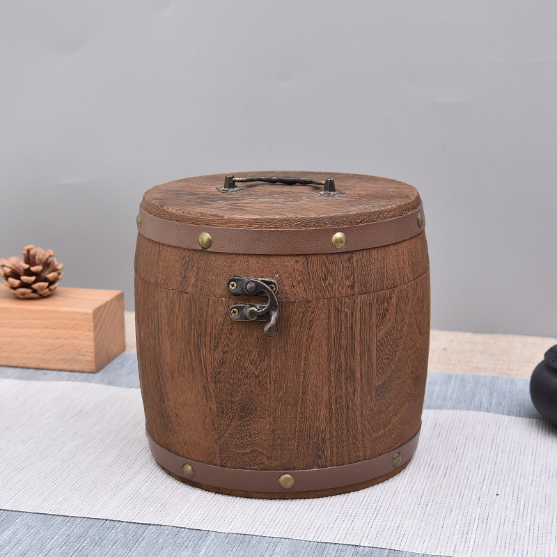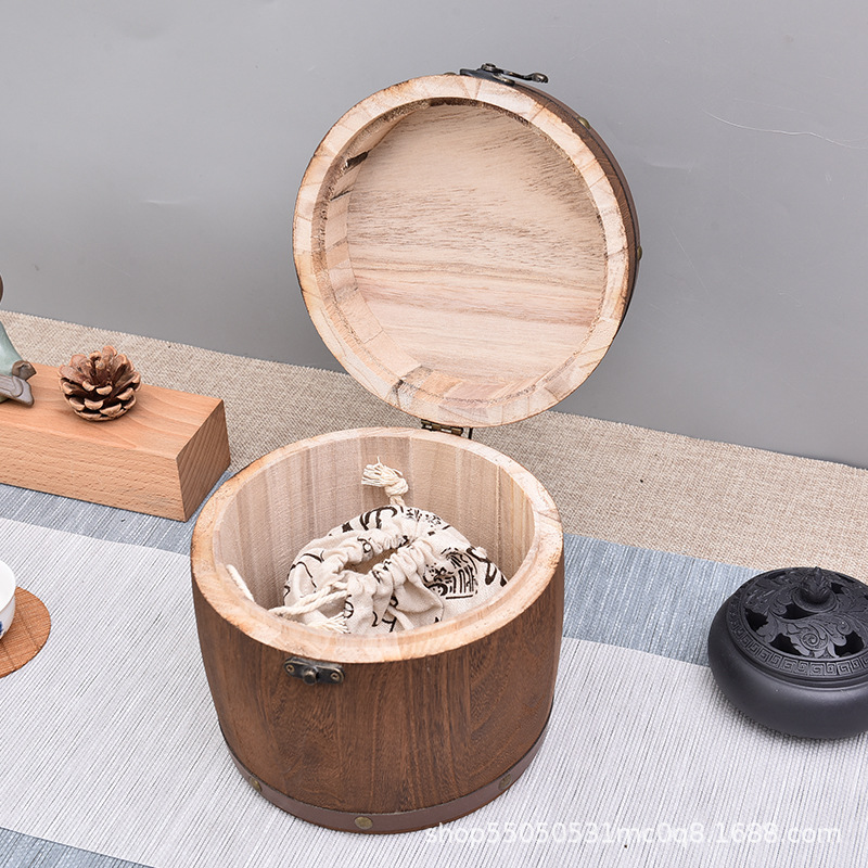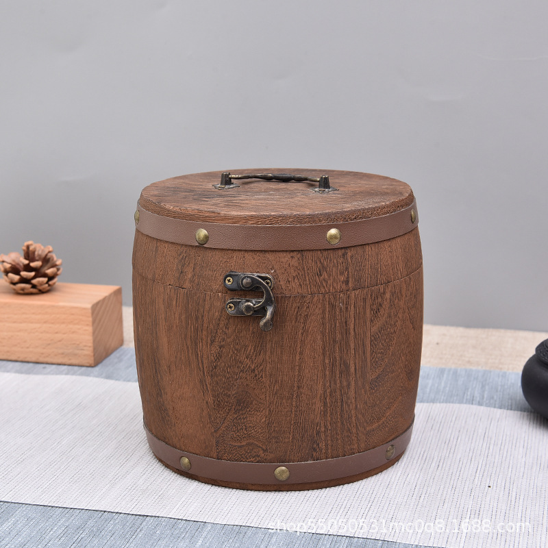 Чайная бочка с внутренней сумкой Ящик для хранения чайного торта Деревянная коробка для чая из массива дерева Деревянная бочка Чайная деревянная коробка Кофейная бочка