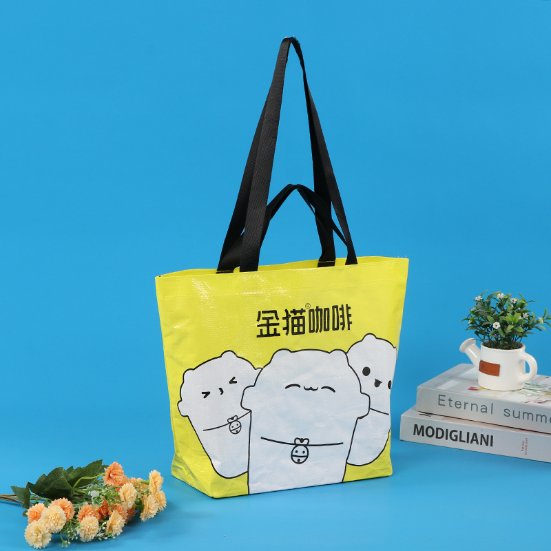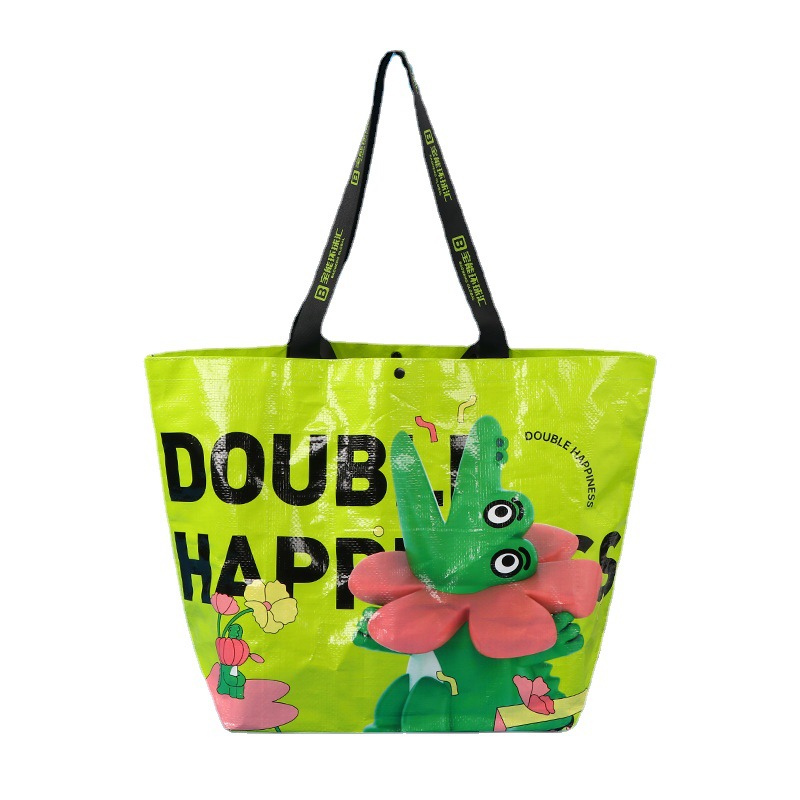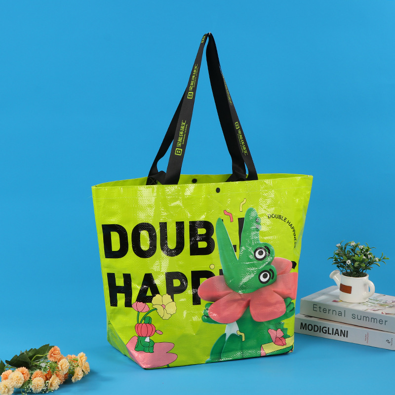Модная популярная ламинированная тканая сумка с цветным принтом, индивидуальная сумка-портфель, тканая сумка для покупок в форме лодки, полипропиленовая ламинированная сумка
