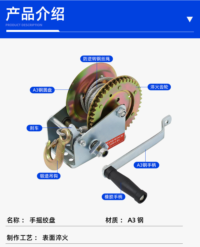 Ручная лебедка с утолщенным стальным тросом, малая тяговая машина, подъемник, быстрый подъем, для морского использования, трансграничные поставки на Amazon.
