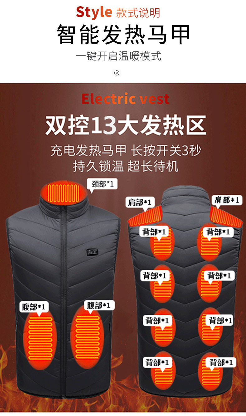 Трансграничный двойной контроль 11 зоны нагревания жилета Электрический нагревательный жилет