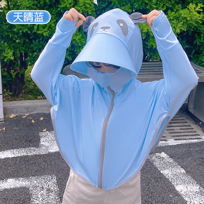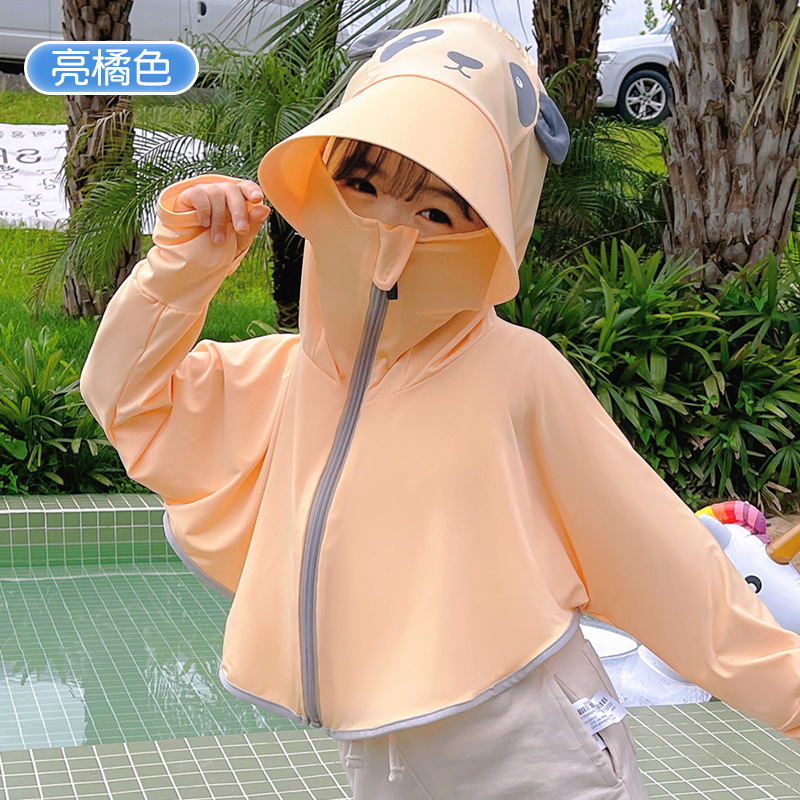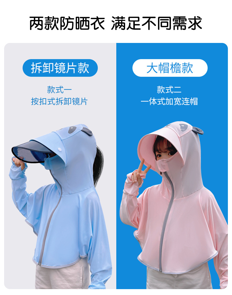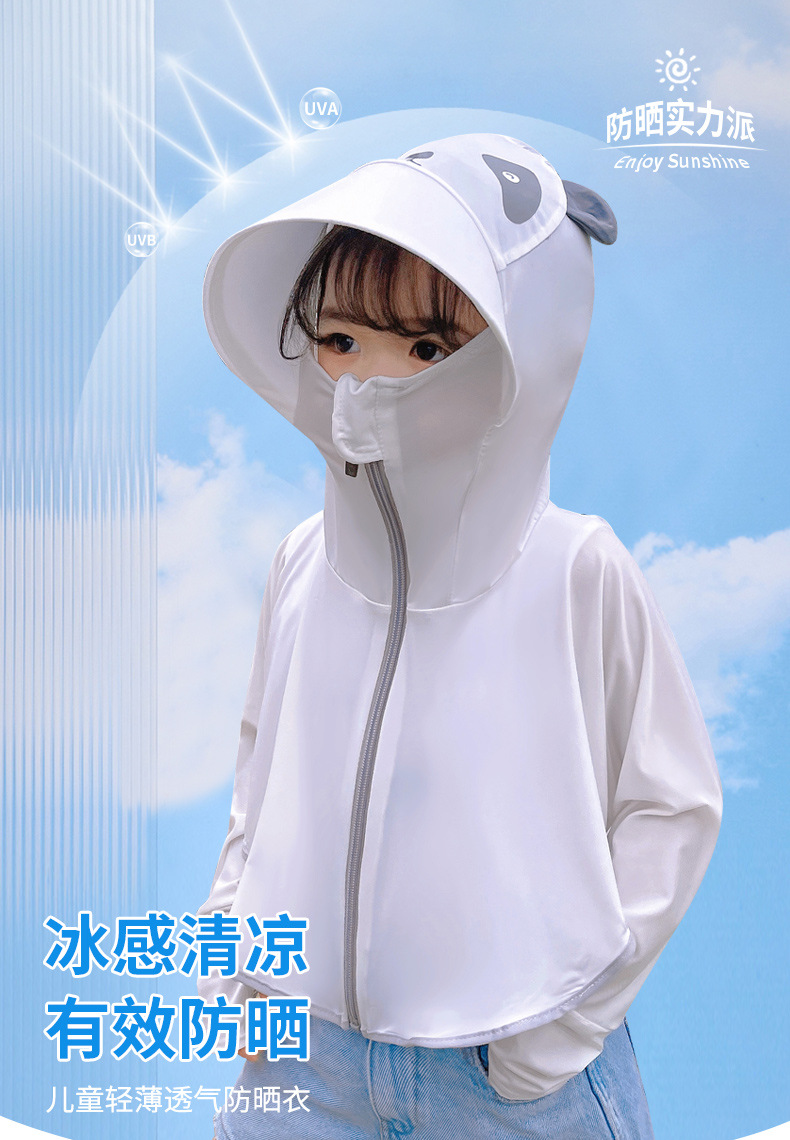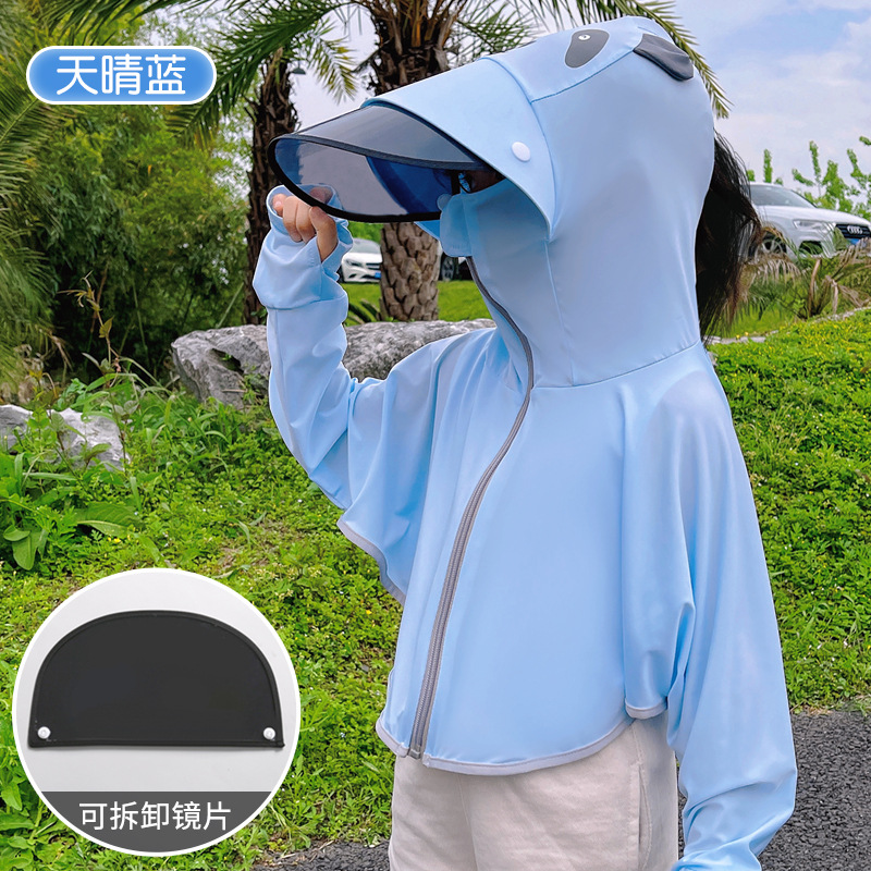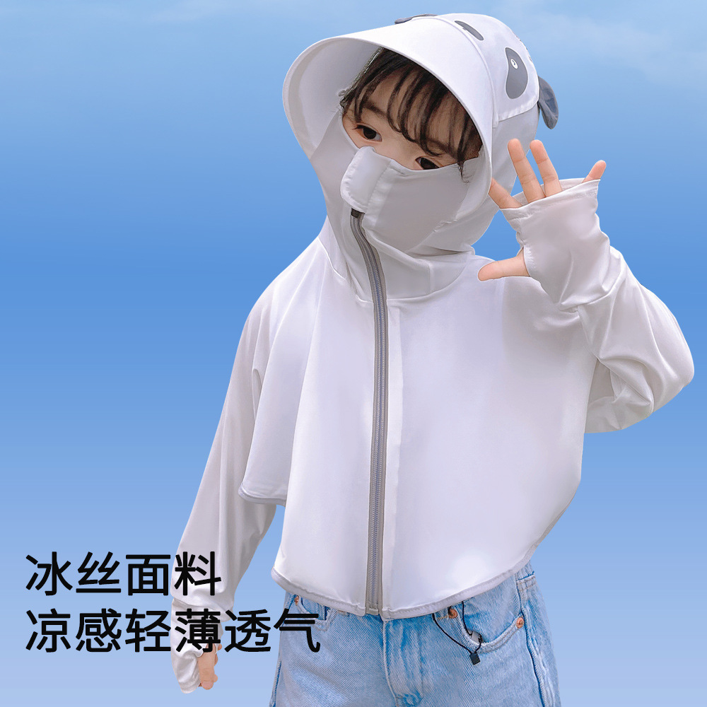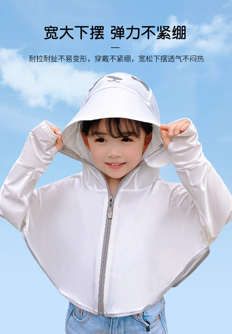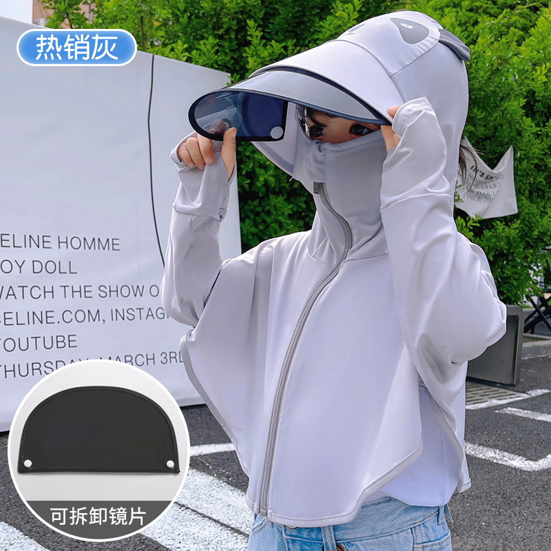 Детская солнцезащитная одежда с ледяной шелк 2025 летняя анти-ультрафиолетовая девочка мальчик красивый тонкий дышащий солнцезащитный костюм с капюшоном