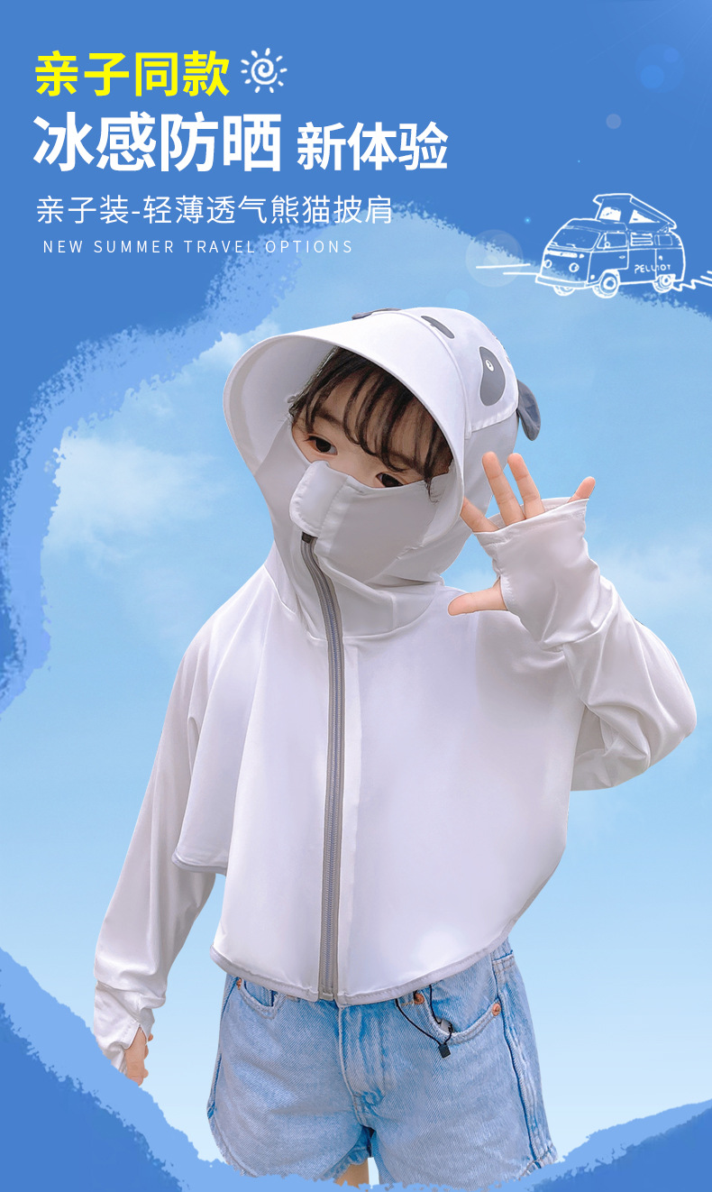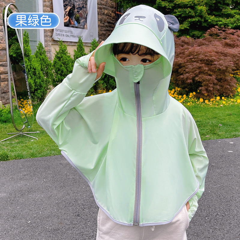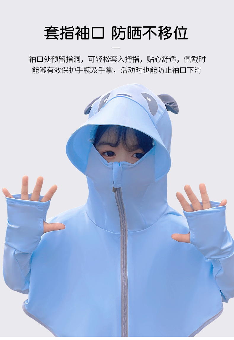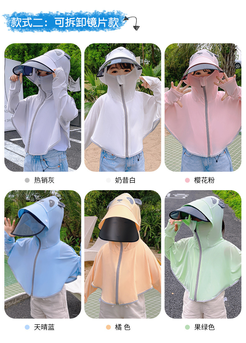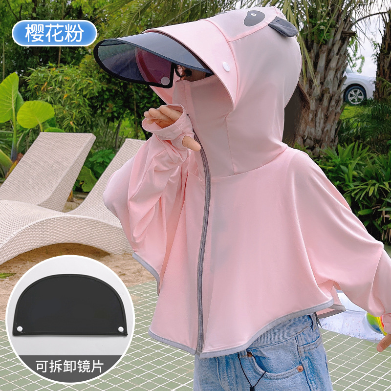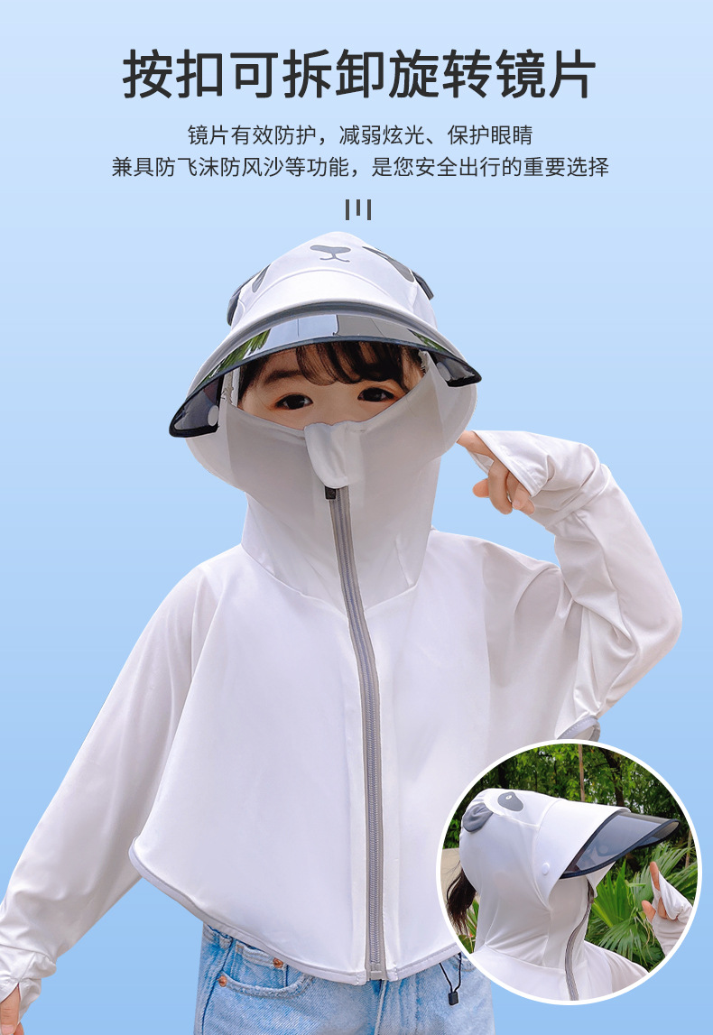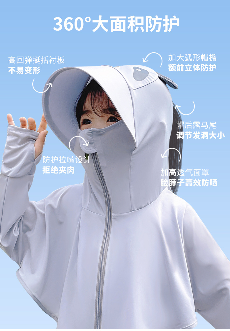 Детская солнцезащитная одежда с ледяной шелк 2025 летняя анти-ультрафиолетовая девочка мальчик красивый тонкий дышащий солнцезащитный костюм с капюшоном