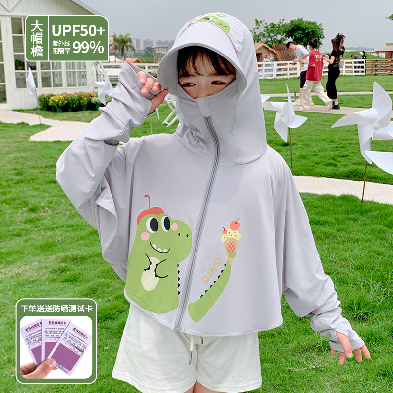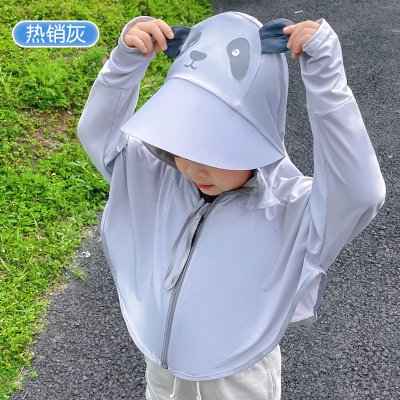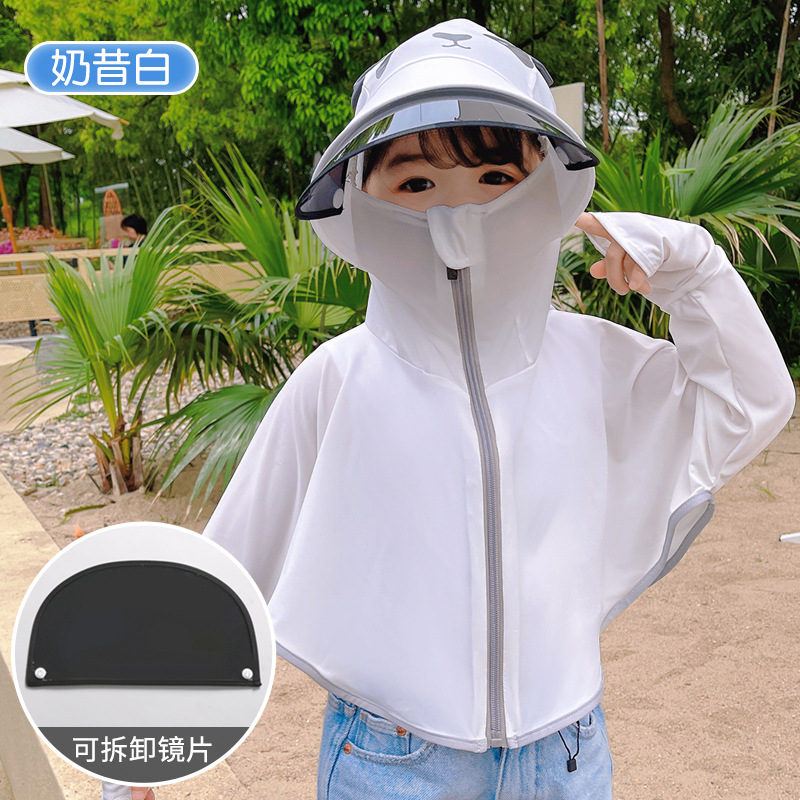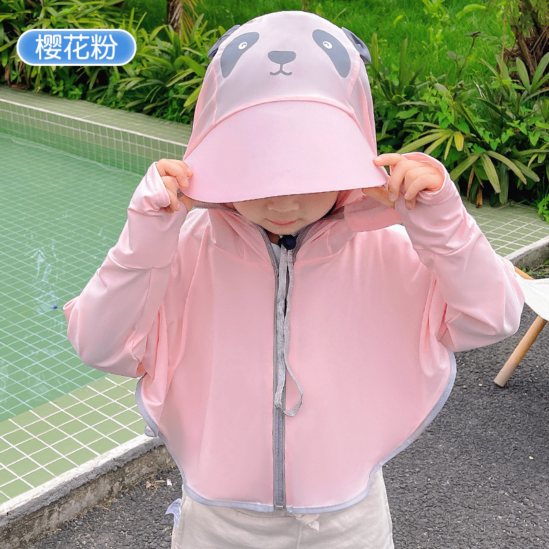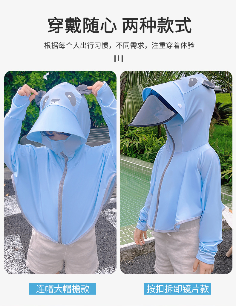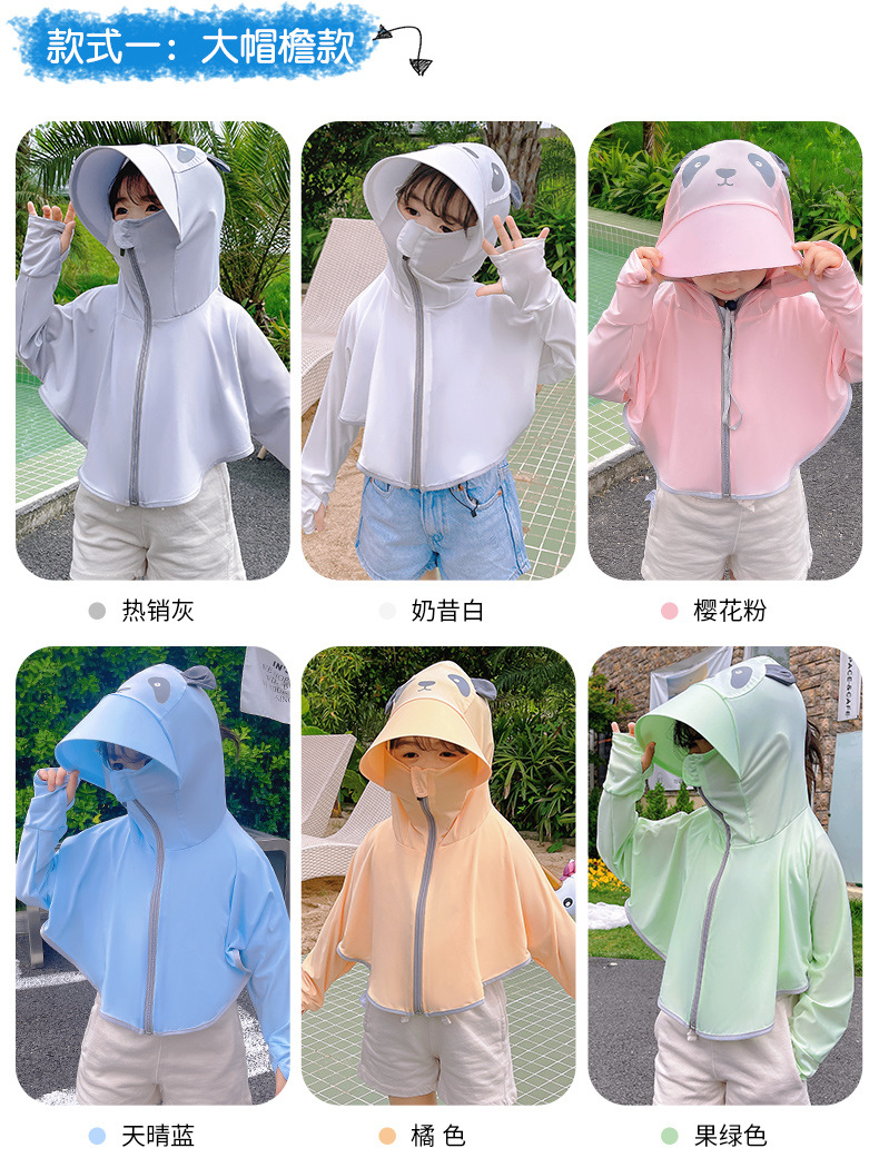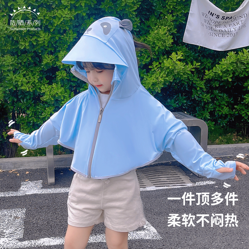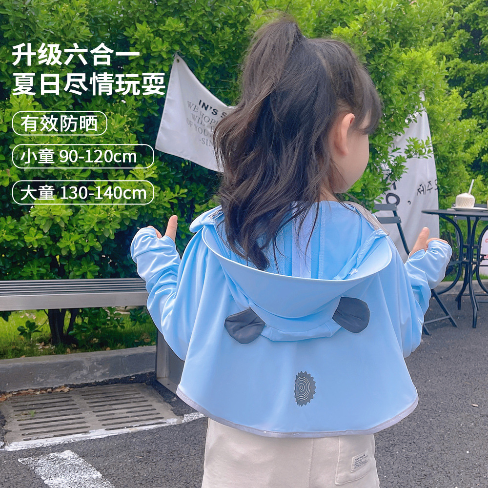 Детская солнцезащитная одежда с ледяной шелк 2025 летняя анти-ультрафиолетовая девочка мальчик красивый тонкий дышащий солнцезащитный костюм с капюшоном