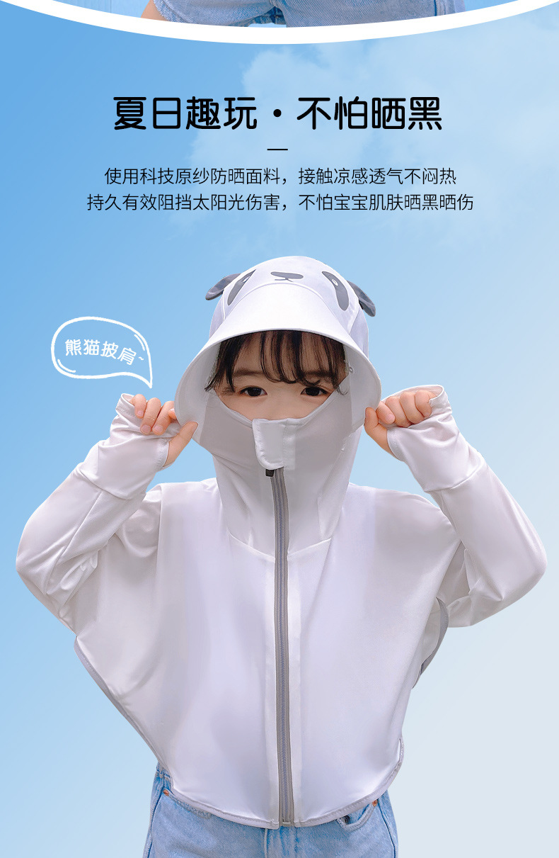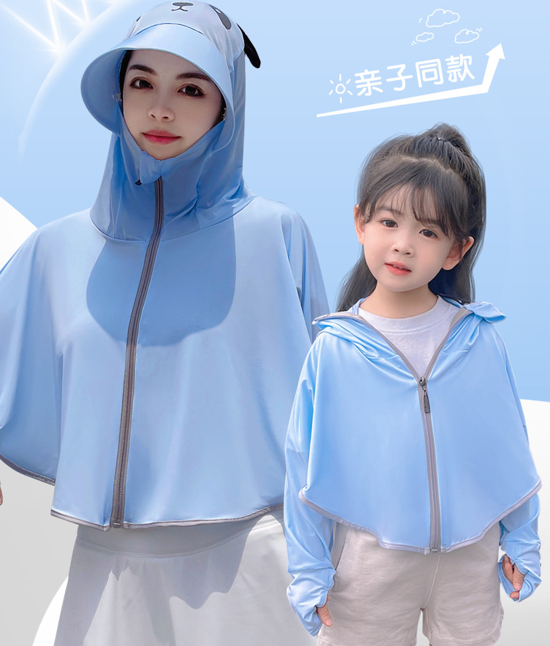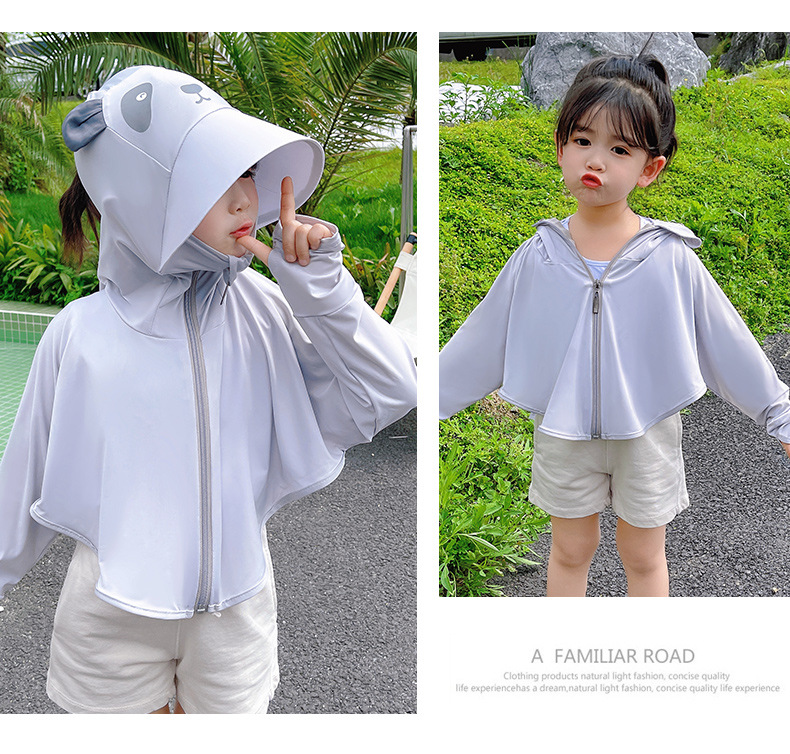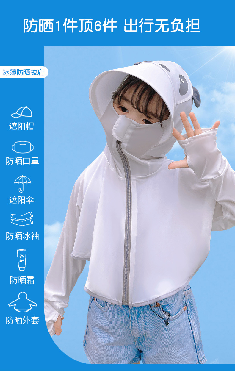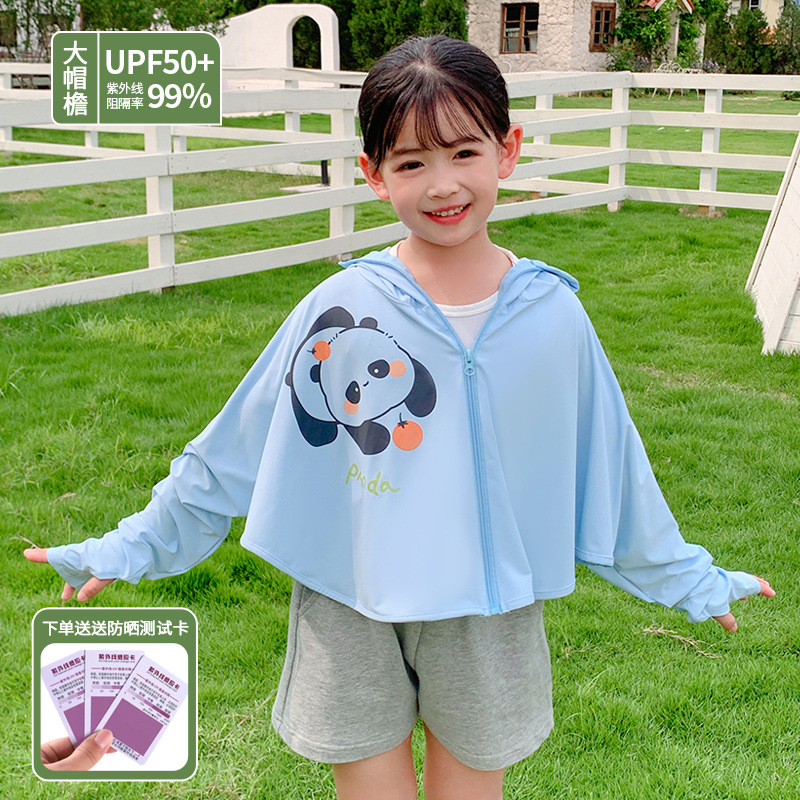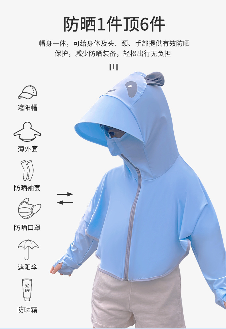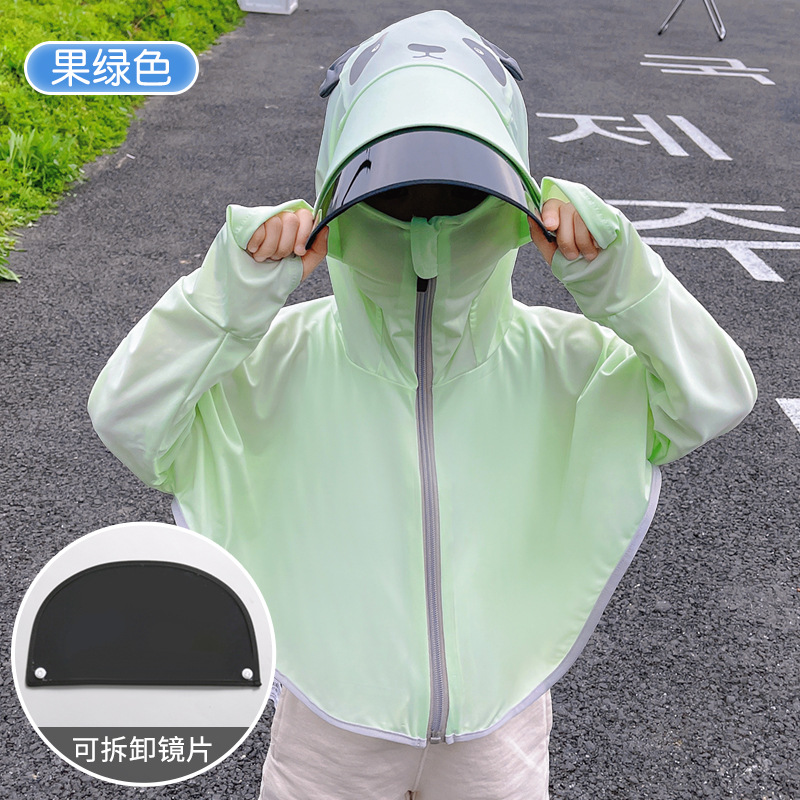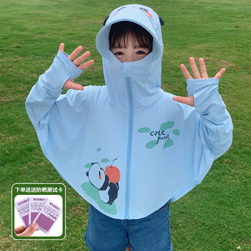 Детская солнцезащитная одежда с ледяной шелк 2025 летняя анти-ультрафиолетовая девочка мальчик красивый тонкий дышащий солнцезащитный костюм с капюшоном