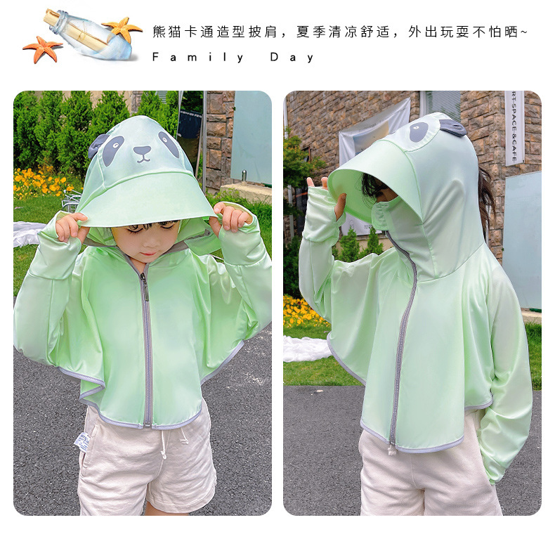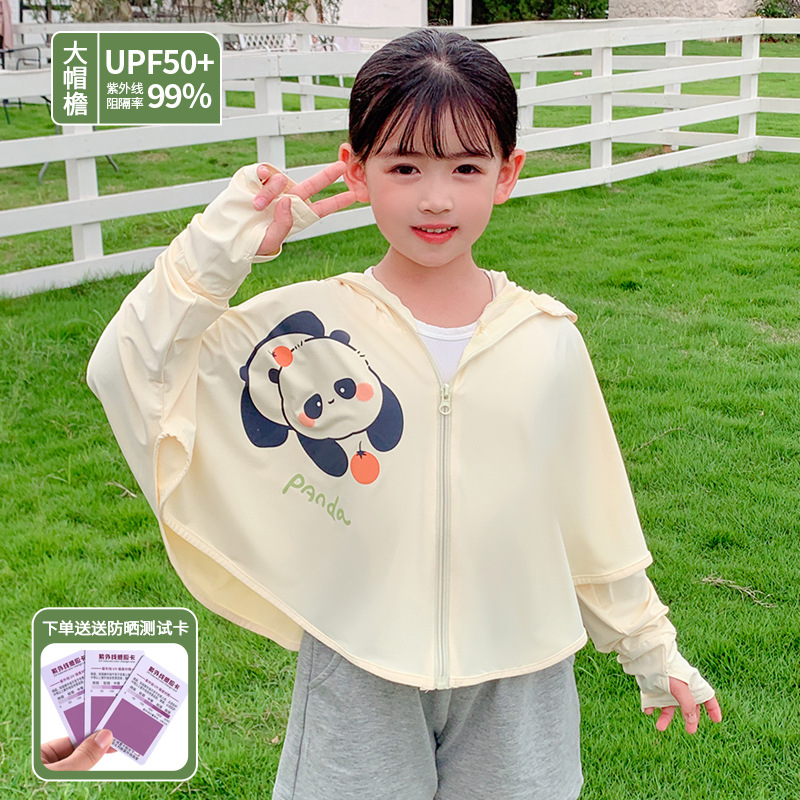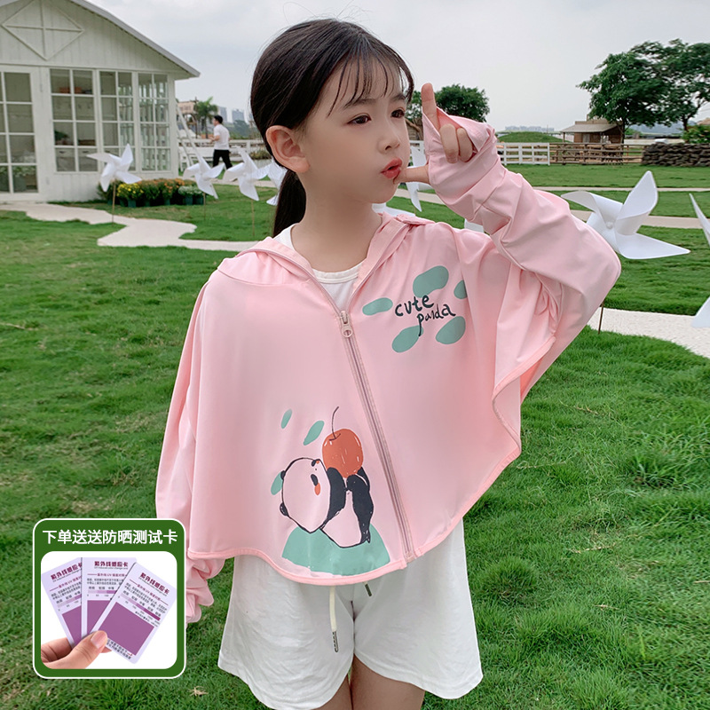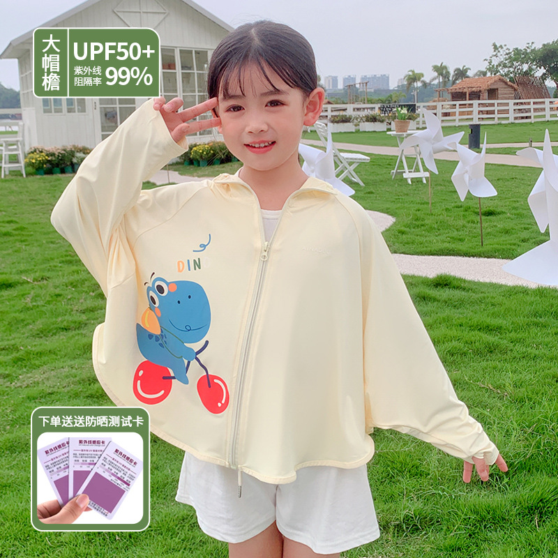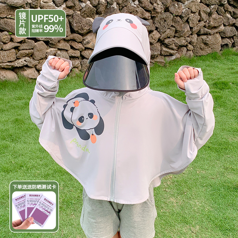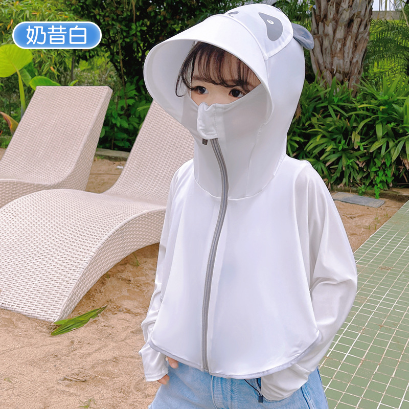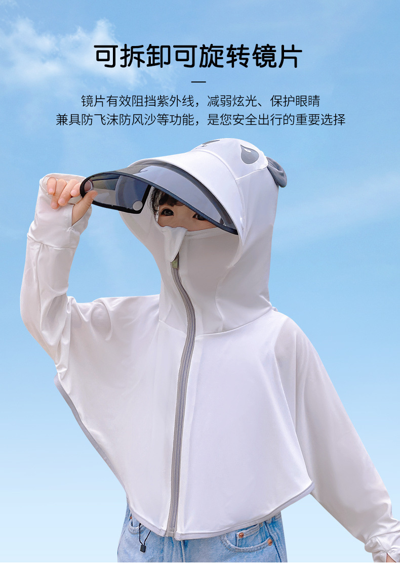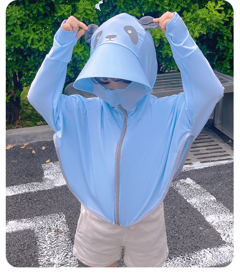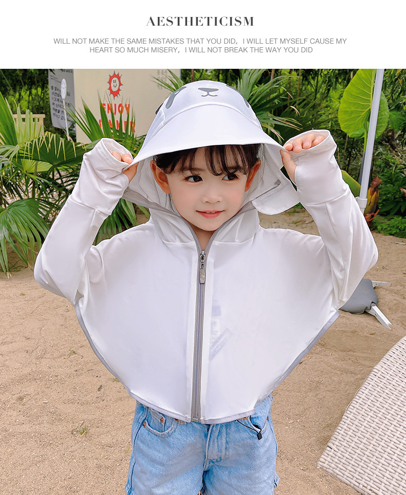 Детская солнцезащитная одежда с ледяной шелк 2025 летняя анти-ультрафиолетовая девочка мальчик красивый тонкий дышащий солнцезащитный костюм с капюшоном