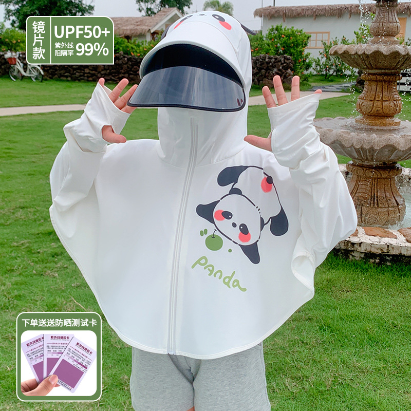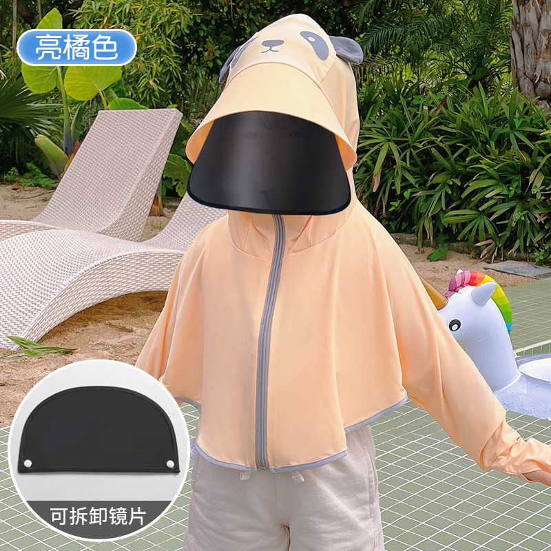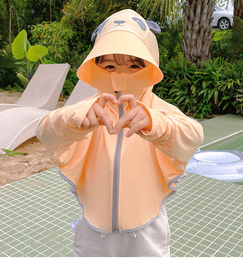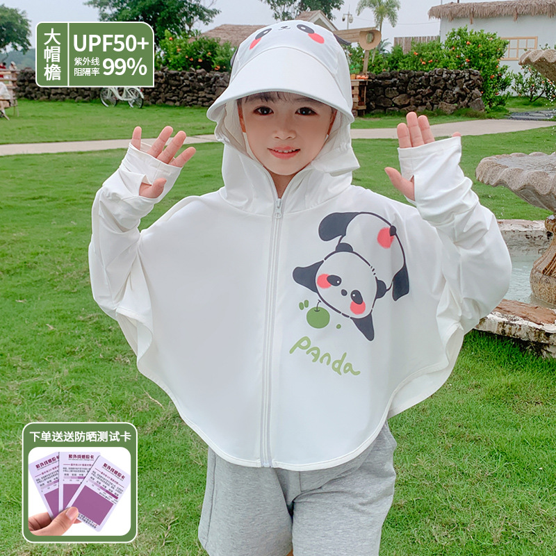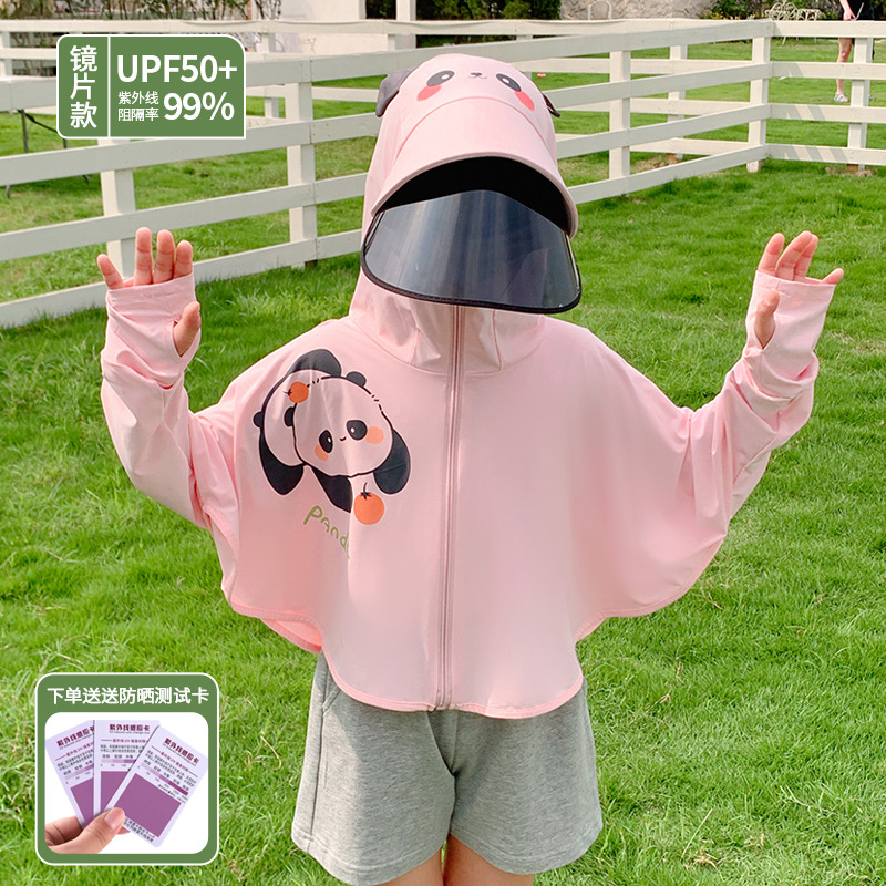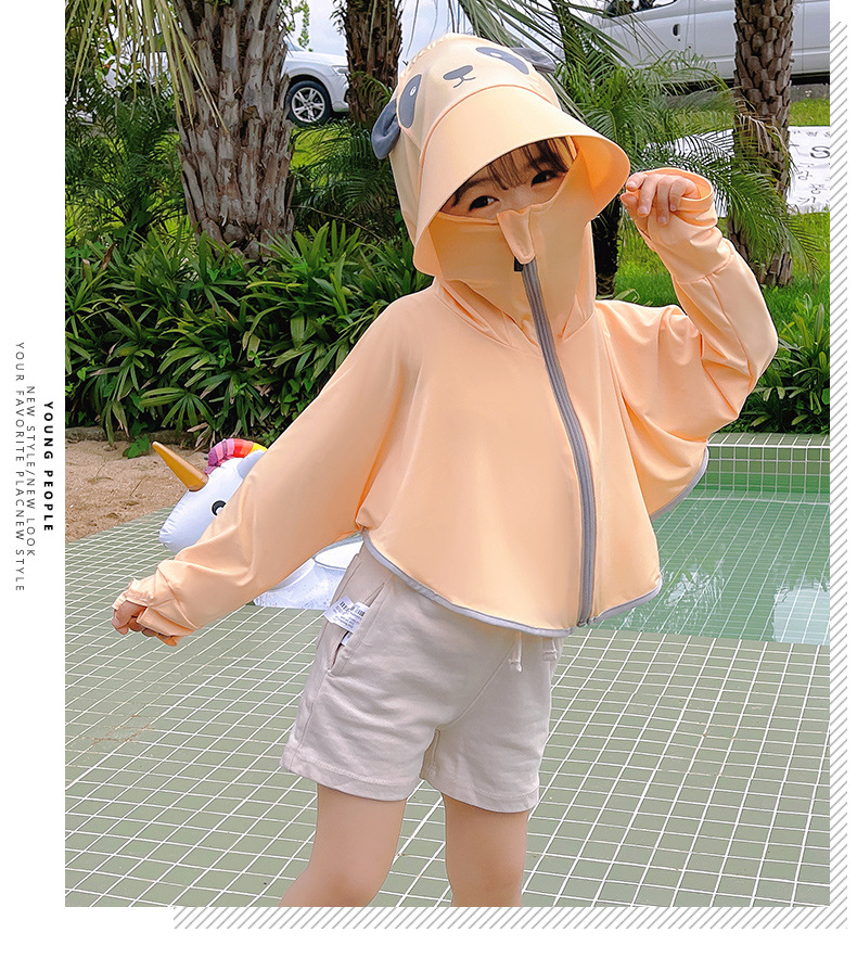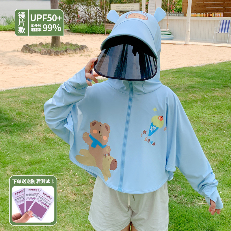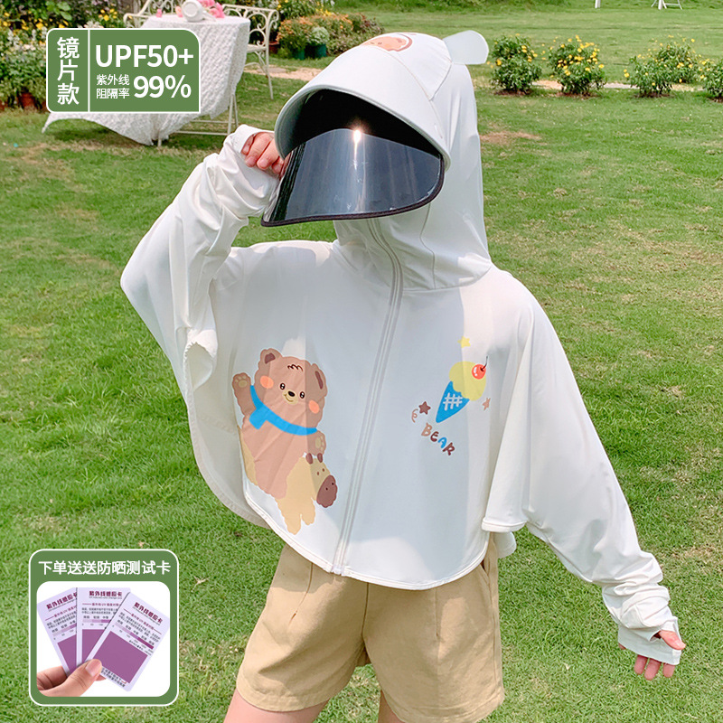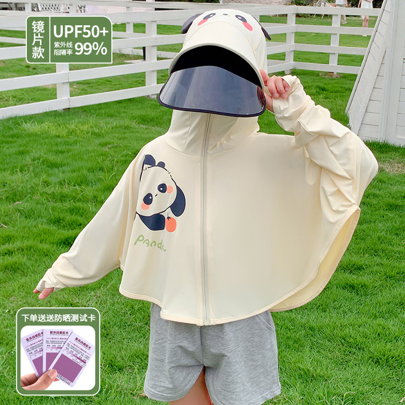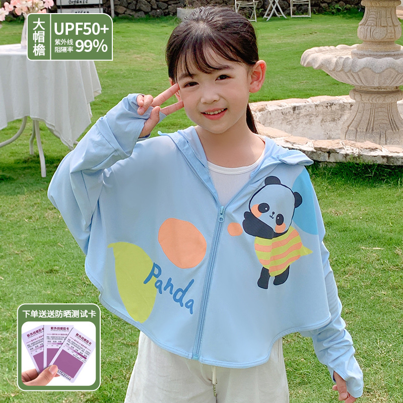 Детская солнцезащитная одежда с ледяной шелк 2025 летняя анти-ультрафиолетовая девочка мальчик красивый тонкий дышащий солнцезащитный костюм с капюшоном