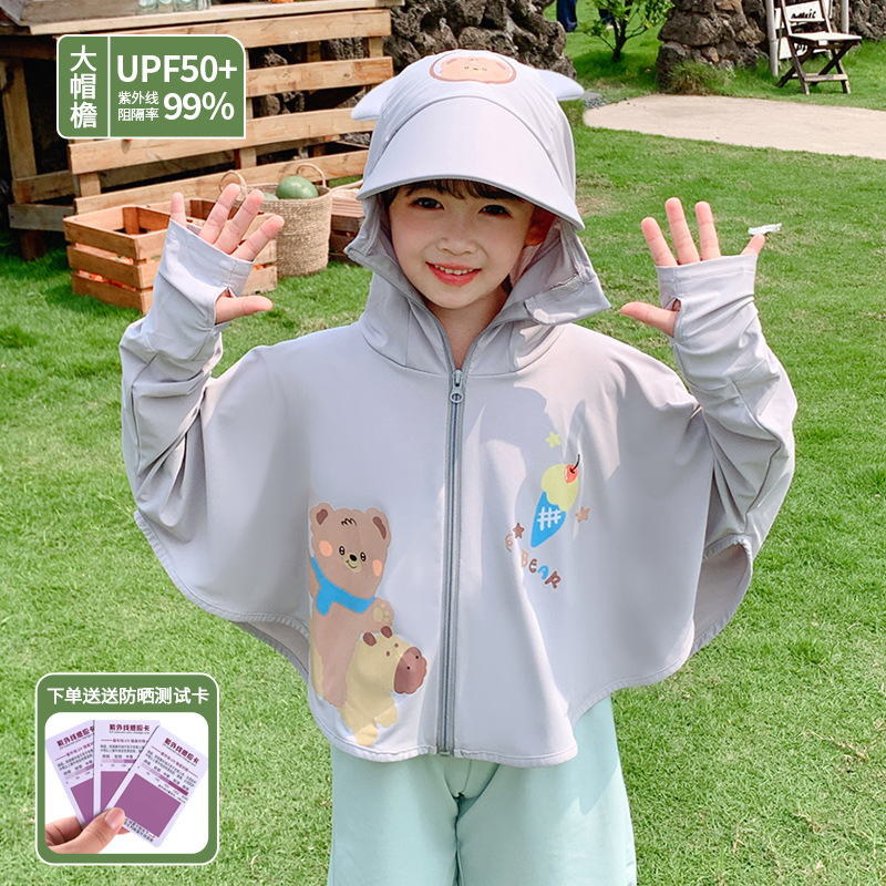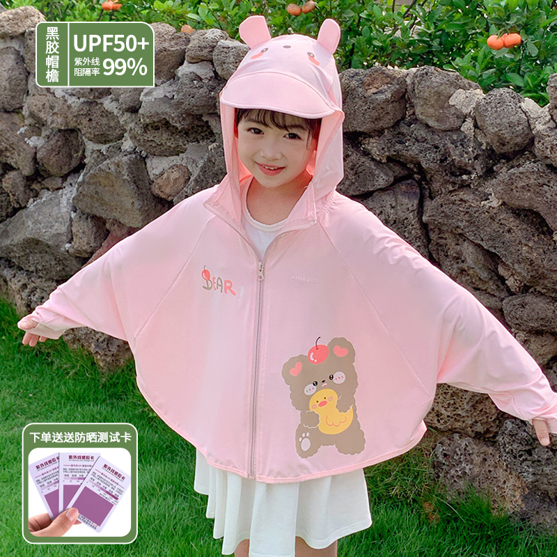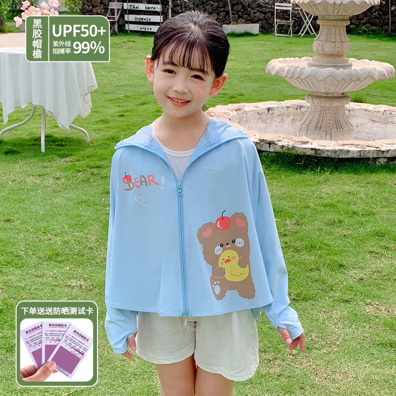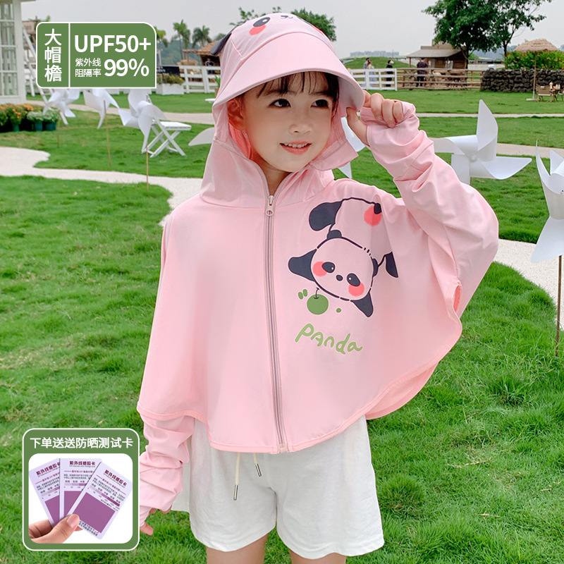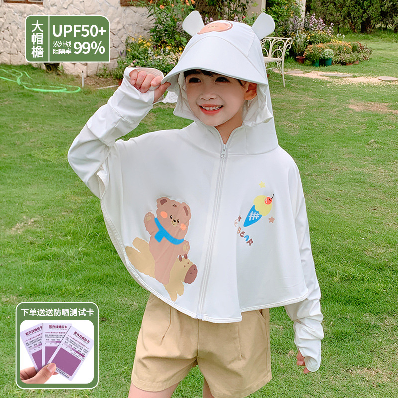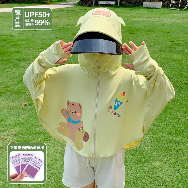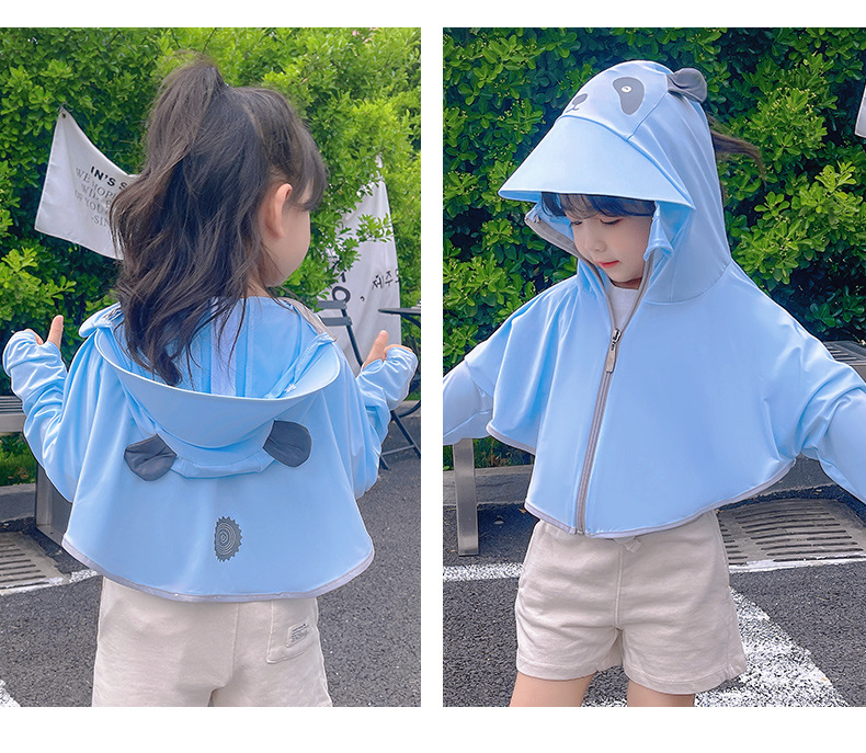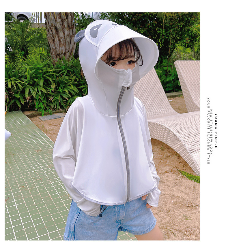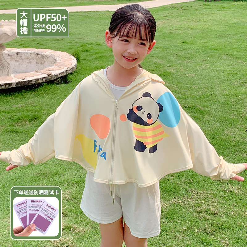 Детская солнцезащитная одежда с ледяной шелк 2025 летняя анти-ультрафиолетовая девочка мальчик красивый тонкий дышащий солнцезащитный костюм с капюшоном