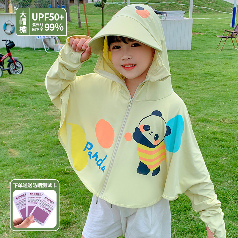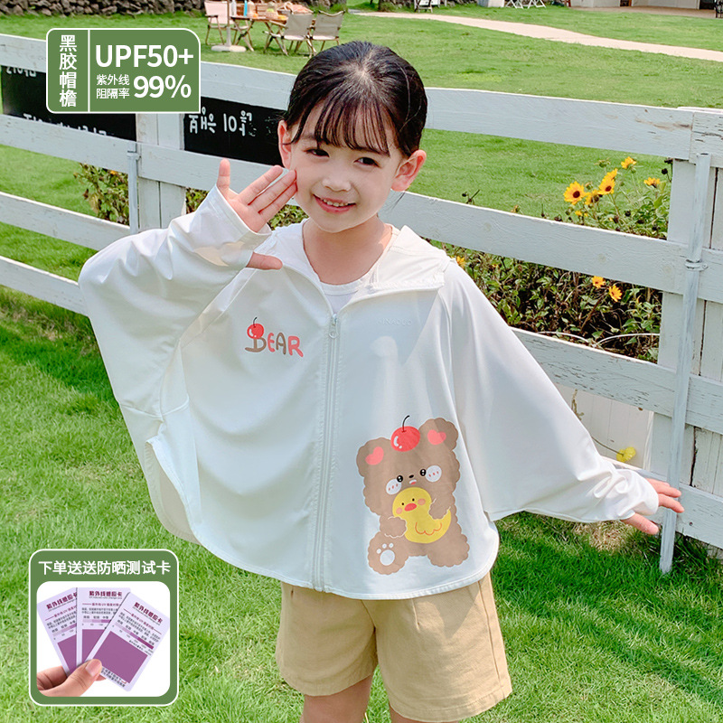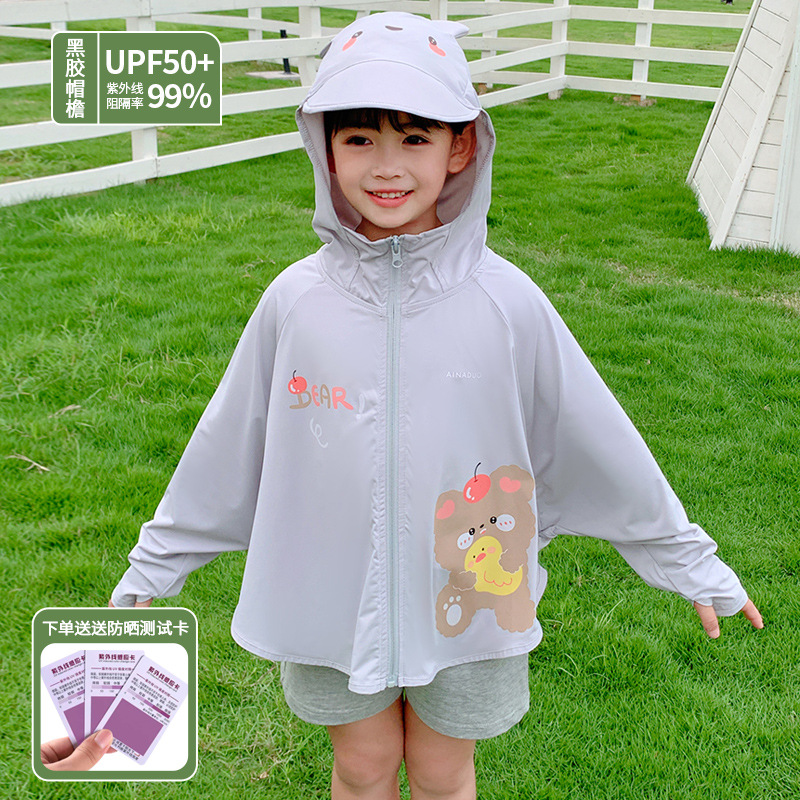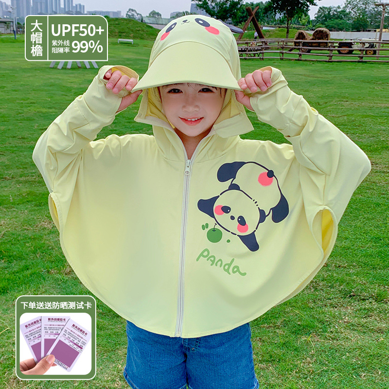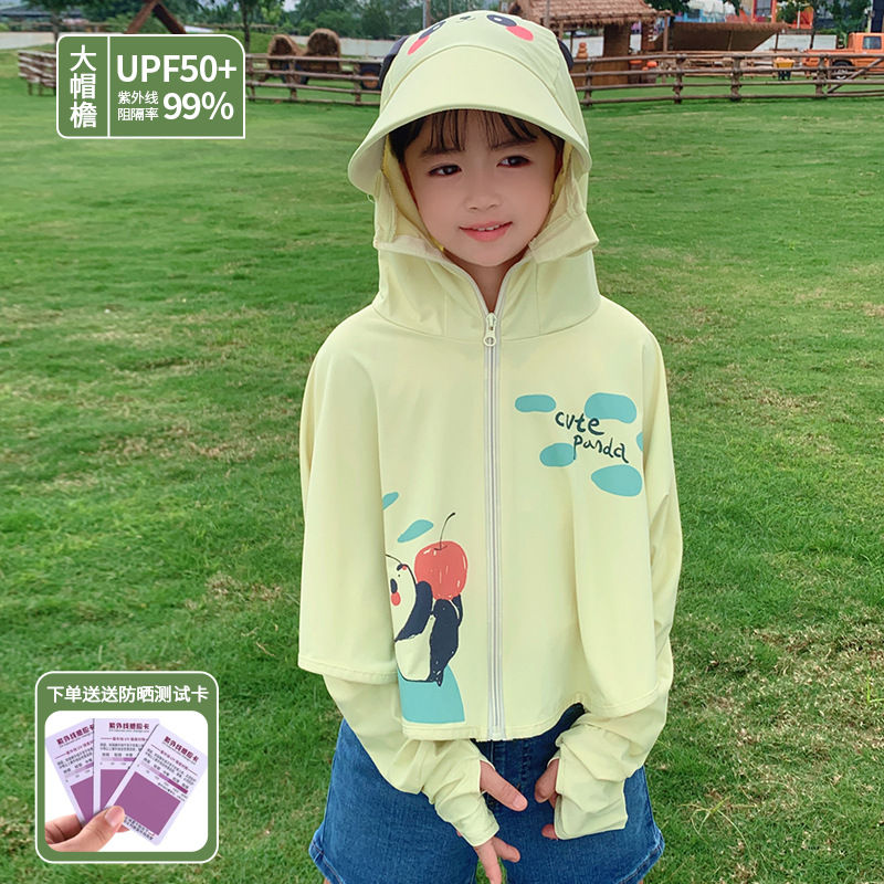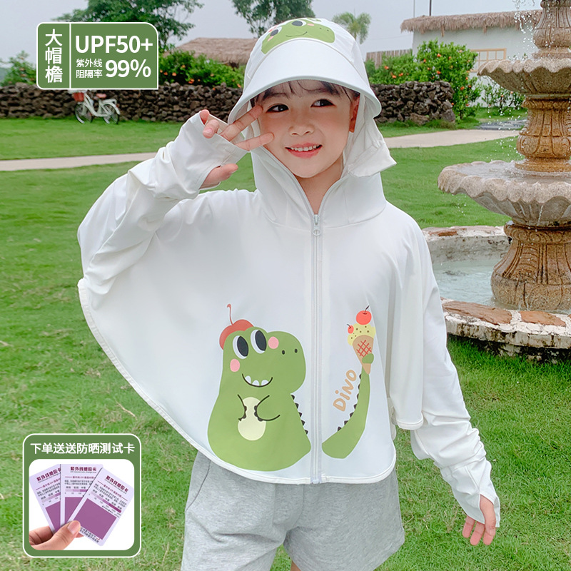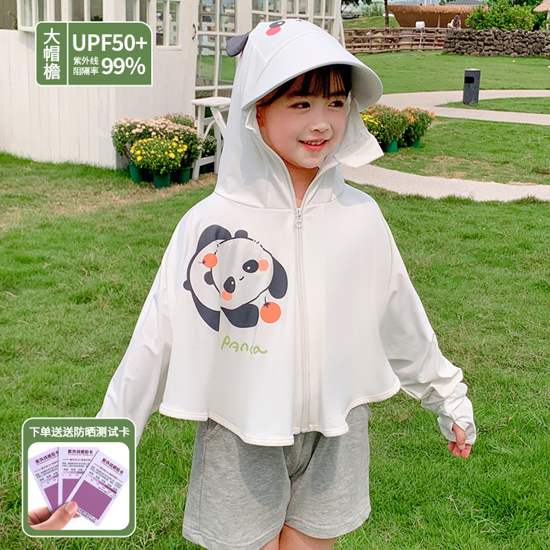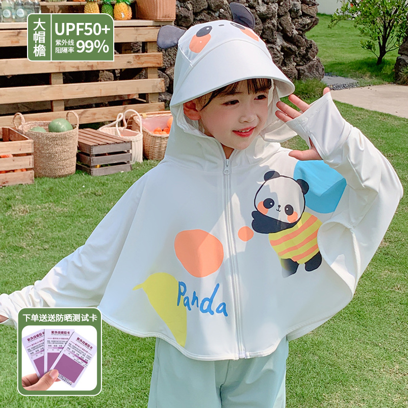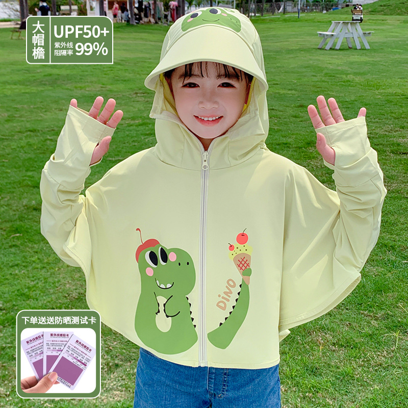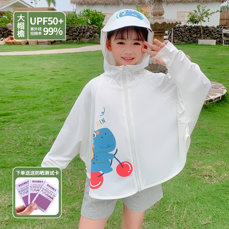 Детская солнцезащитная одежда с ледяной шелк 2025 летняя анти-ультрафиолетовая девочка мальчик красивый тонкий дышащий солнцезащитный костюм с капюшоном