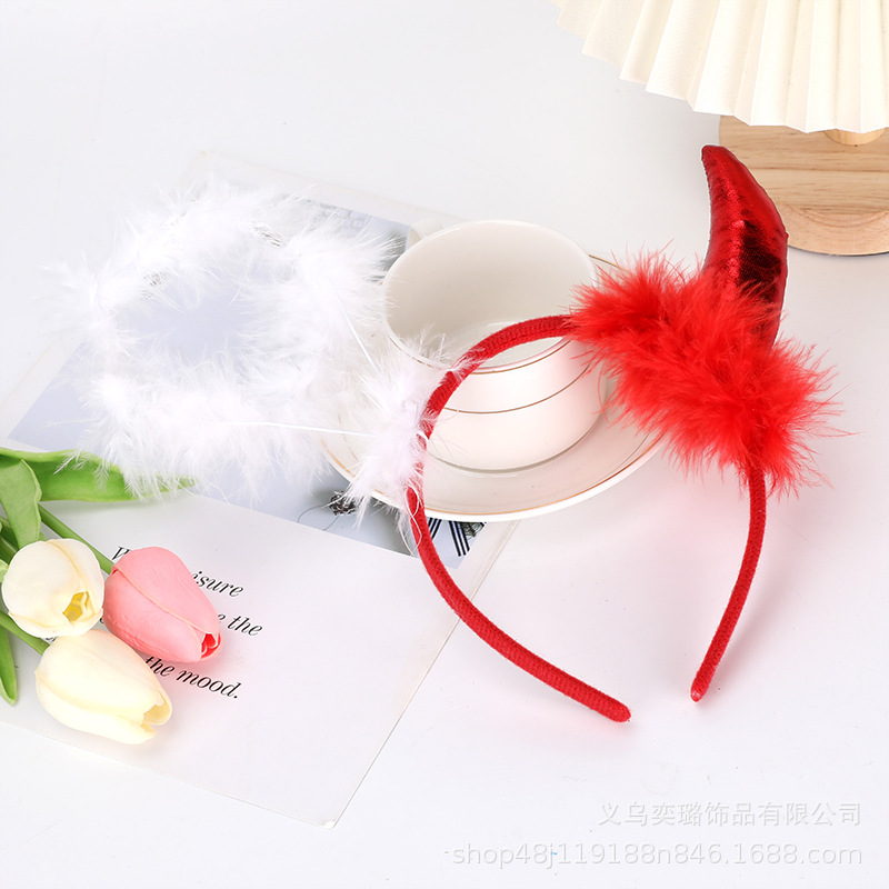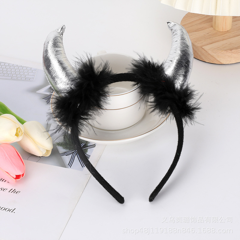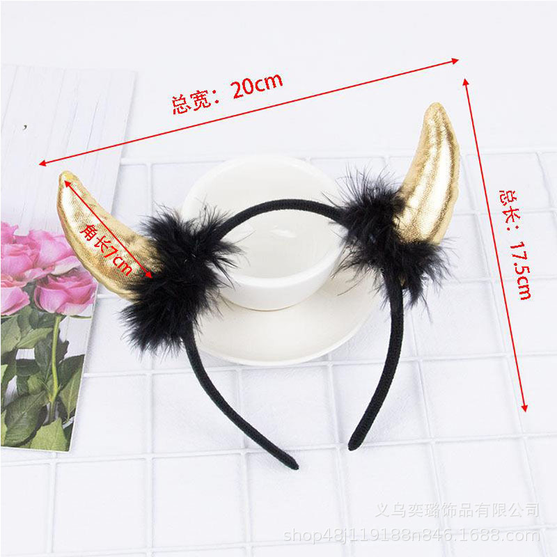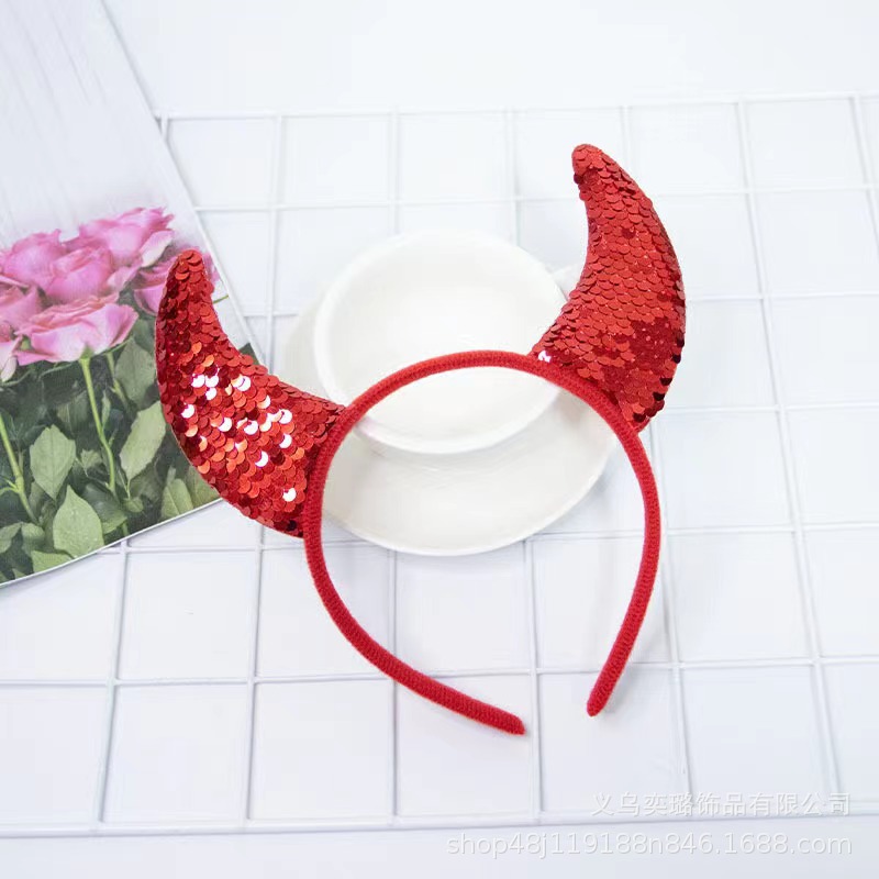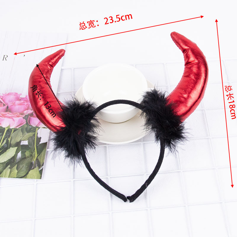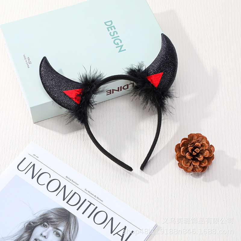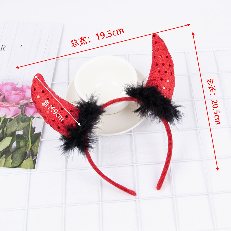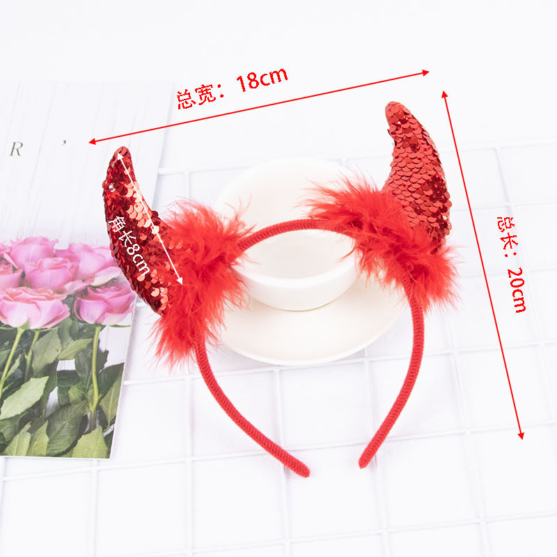 Повязка на голову с рогом дьявола на Хэллоуин, детская праздничная вечеринка для взрослых, головной убор с животными, повязка на голову с красным рогом и блестками, перьями