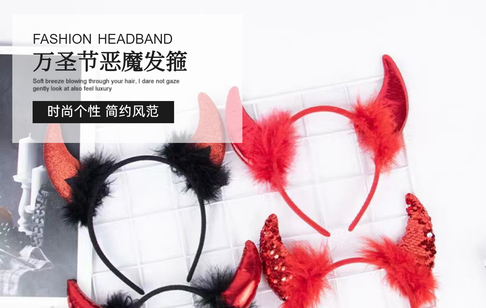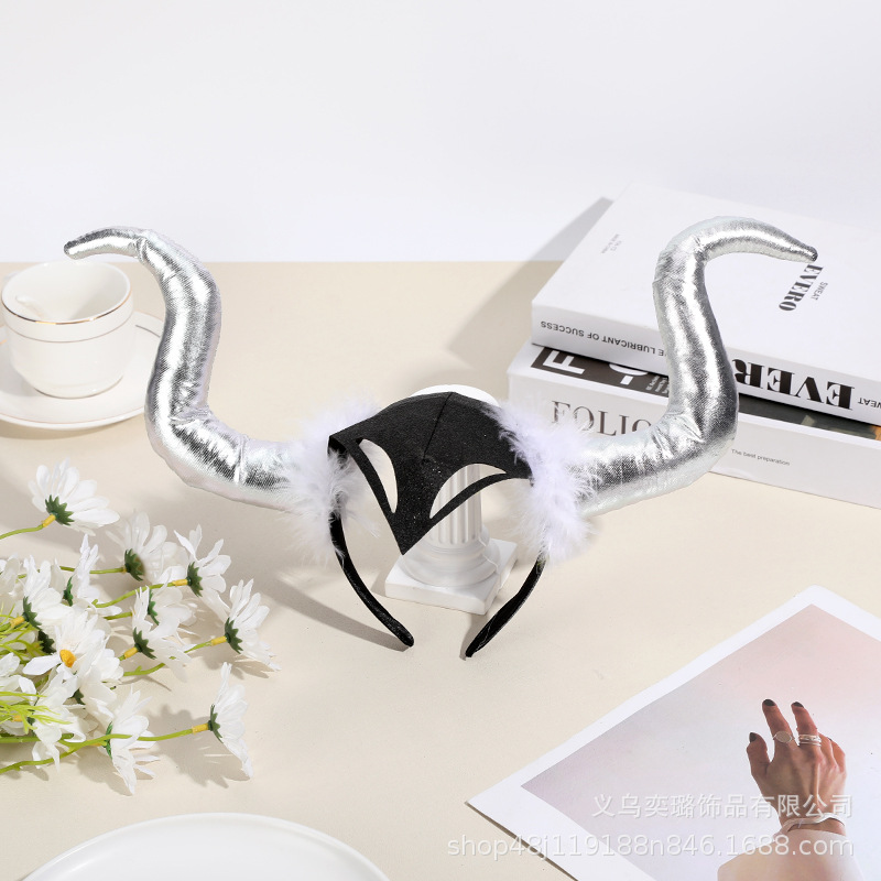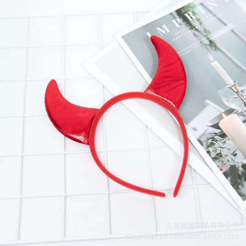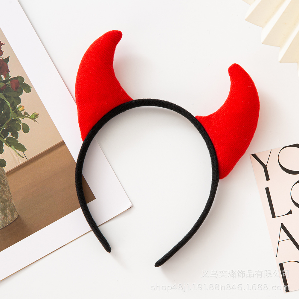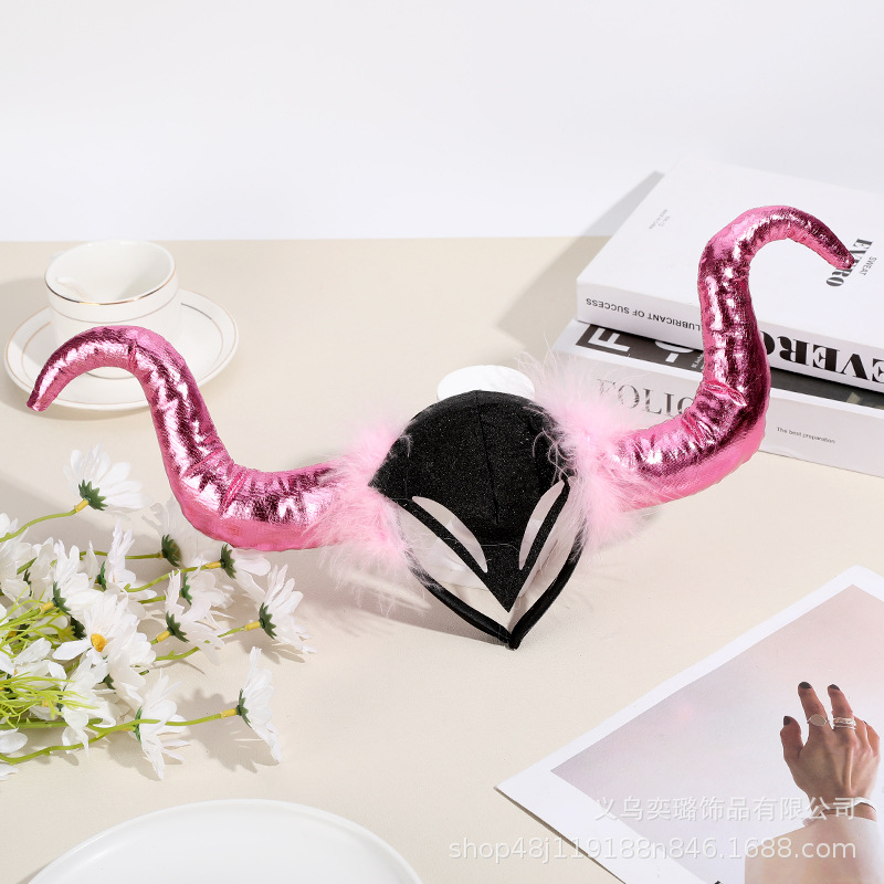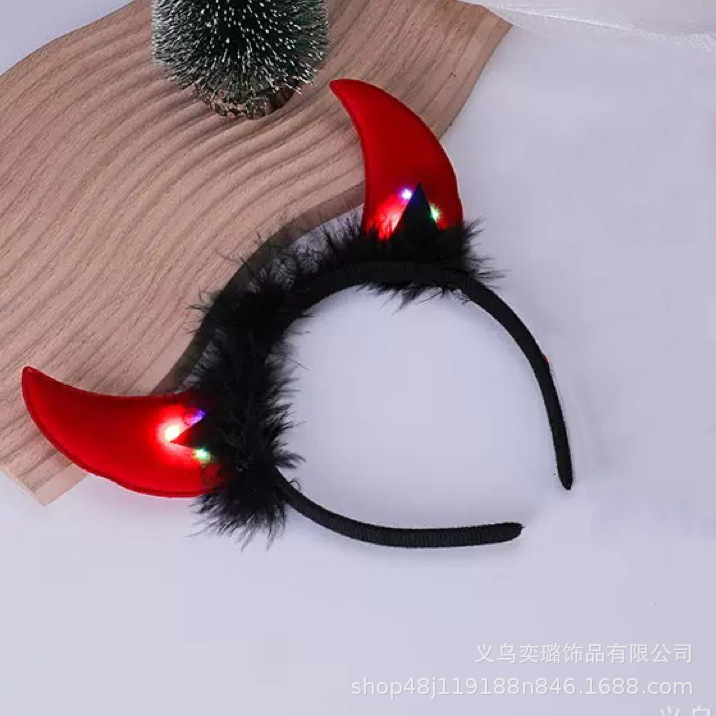 Повязка на голову с рогом дьявола на Хэллоуин, детская праздничная вечеринка для взрослых, головной убор с животными, повязка на голову с красным рогом и блестками, перьями