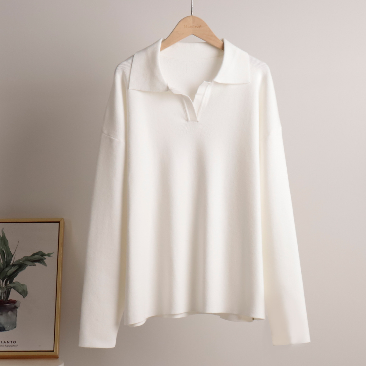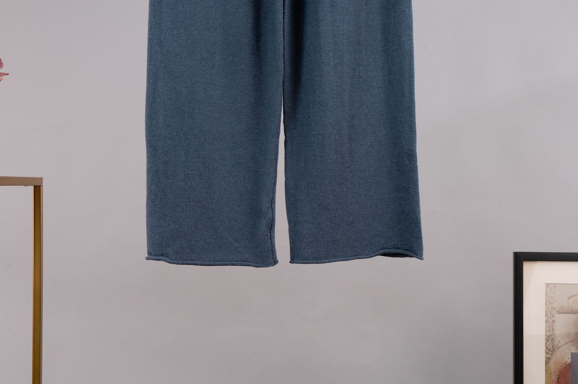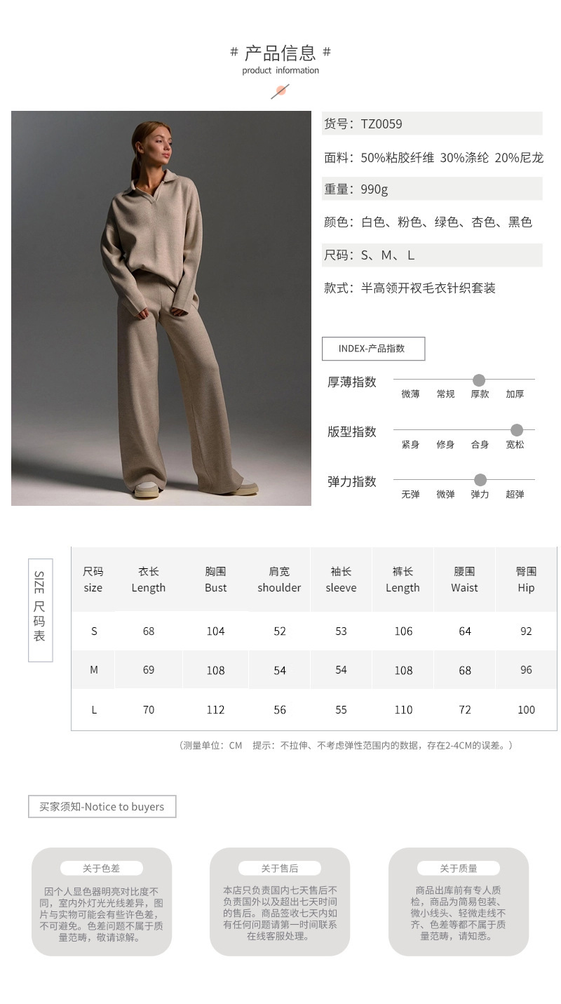 Кросс-бордерный однотонный костюм с лацканами: европейский и американский вязаный свитер + прямые широкие брюки, комплект из двух предметов с высоким воротником