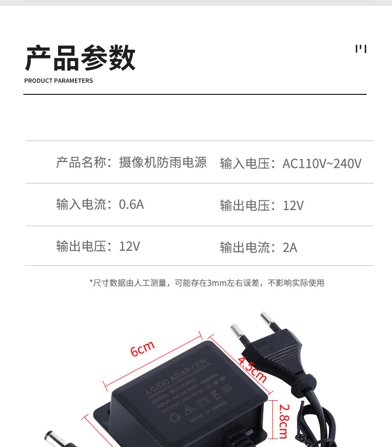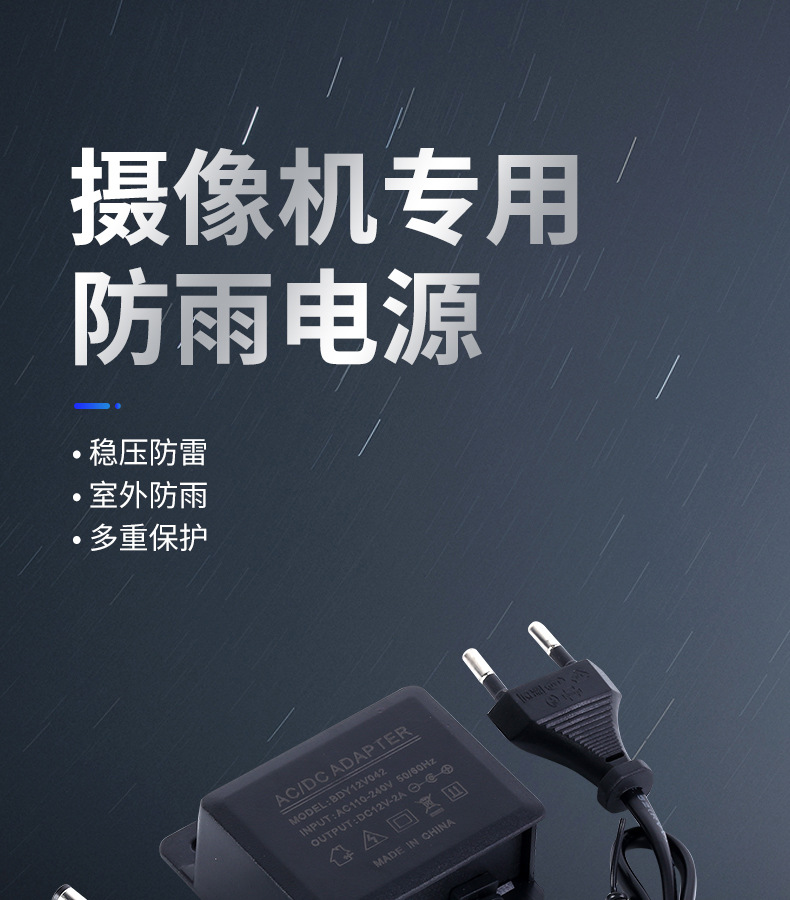 Блок питания 12V2A с специальным разъемом для наружного использования, водонепроницаемый и пыленепроницаемый, для мониторов и систем видеонаблюдения, адаптер питания DC 24W.