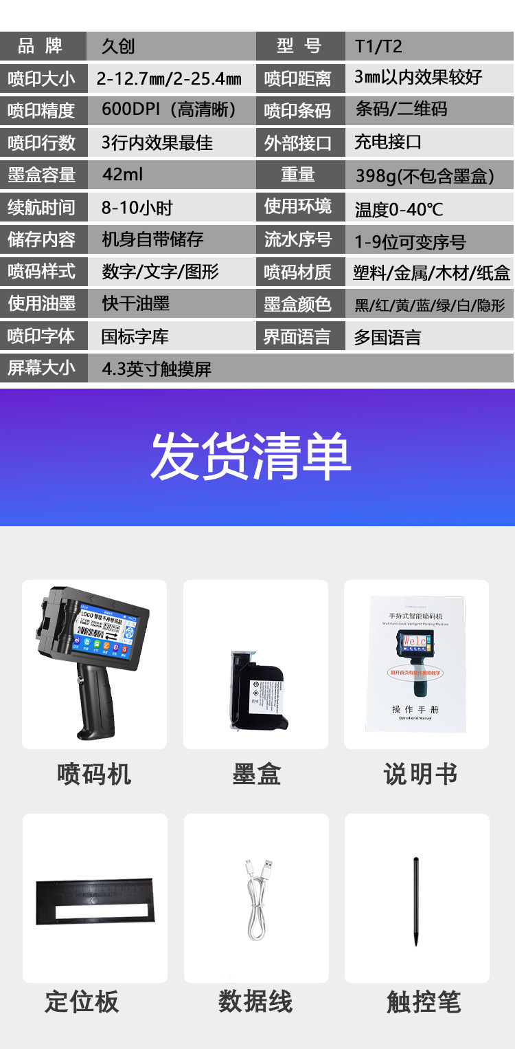 Jiuchuo ручной струйный принтер портативный портативный шаблон даты с двумерным кодом картридж