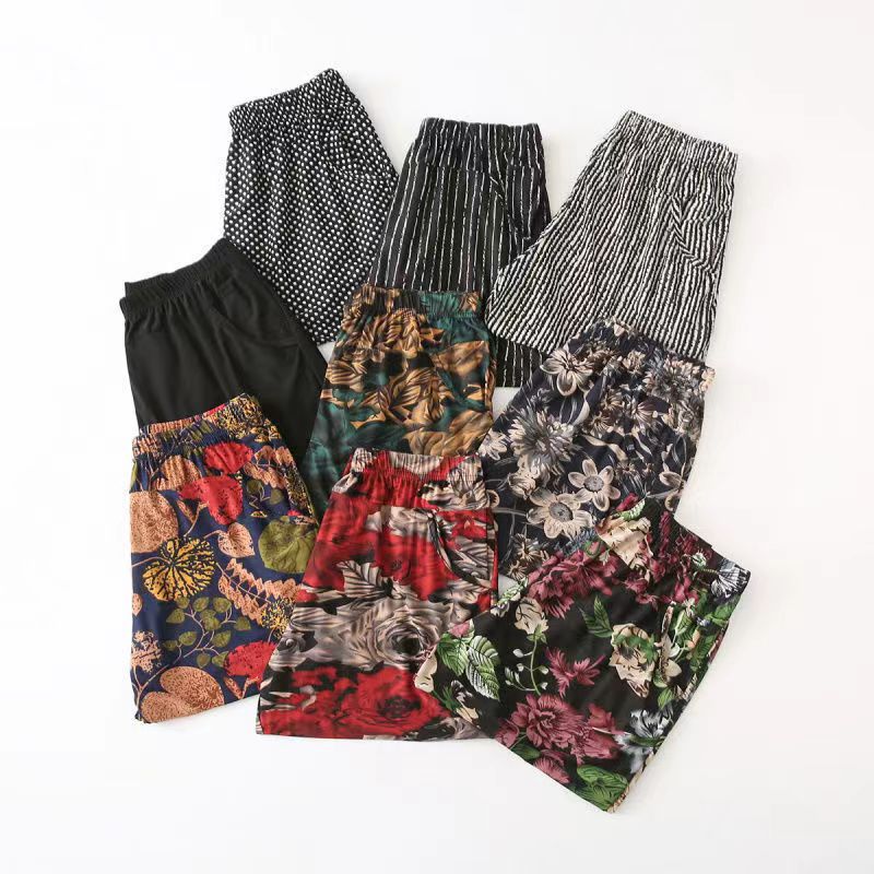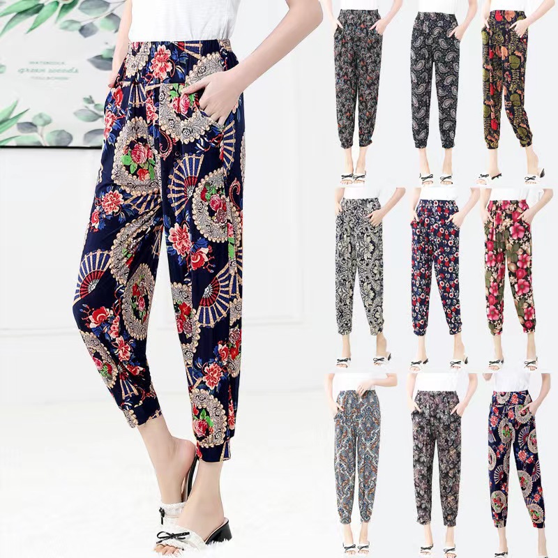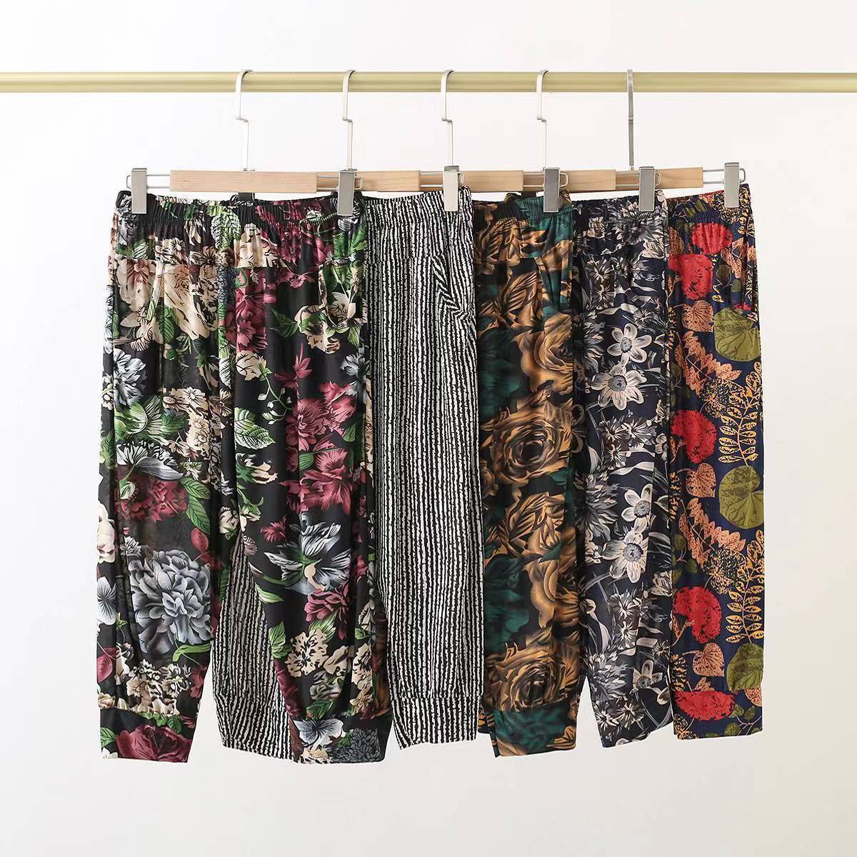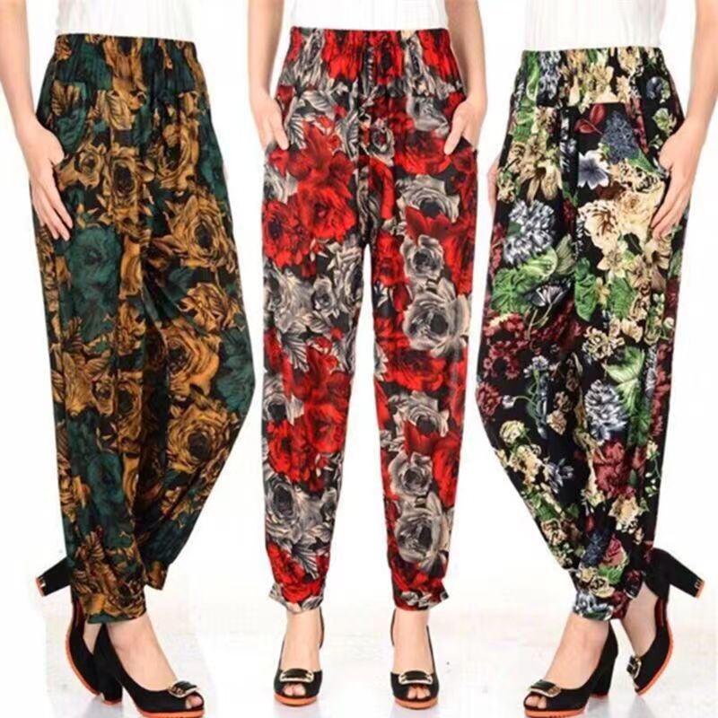 Летние тонкие брюки из ледяного шелка, женские шаровары, Брюки для похудения больших размеров для мам, Антимоскитные брюки с вырезом по щиколотку, женская одежда среднего и пожилого возраста