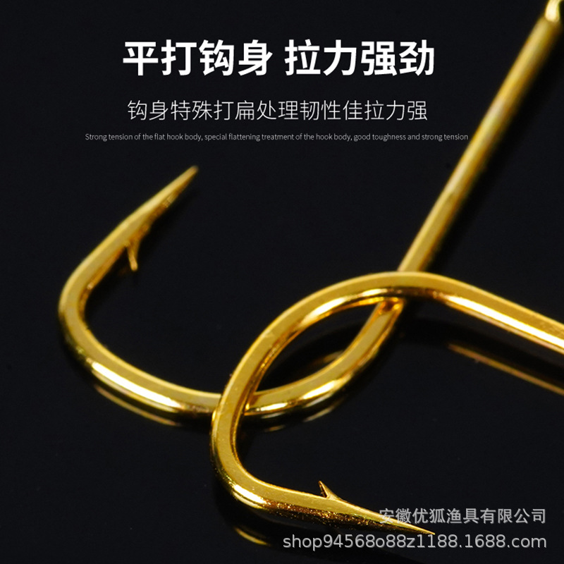 Оптовая Продажа с фабрики с золотым рукавом, плоский антикоррозийный объемный рыболовный крючок, оригинальные товары, колючие, без колючек, тонкая полоска, рыбалка с длинной ручкой, тонкий золотой крючок с рукавом