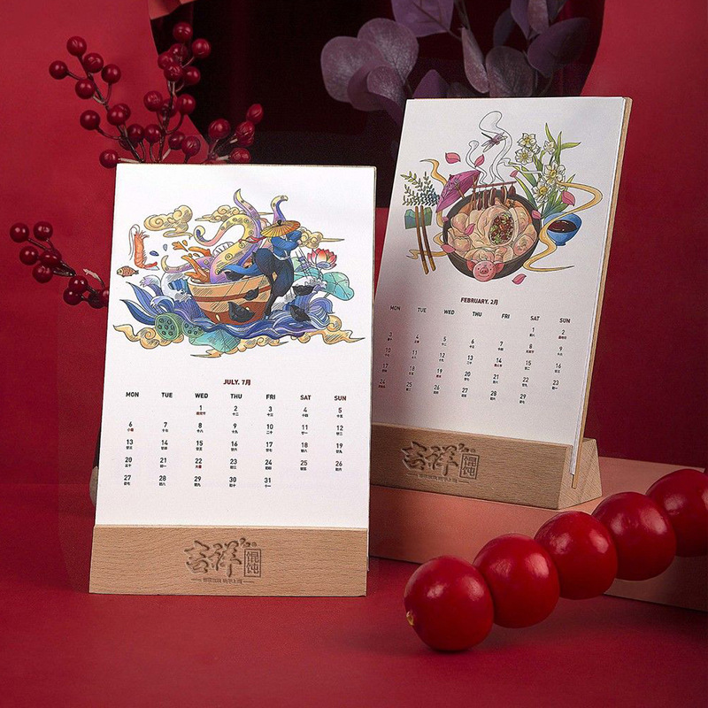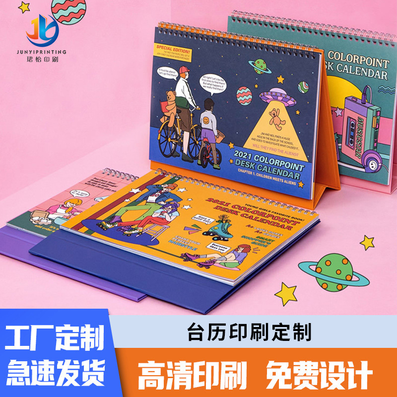 Печать календарей для корпоративных подарков на 2024 год, креативная рекламная продукция компании, настольные календари, украшения, индивидуальный дизайн мини-настольных календарей с мультяшными рисунками