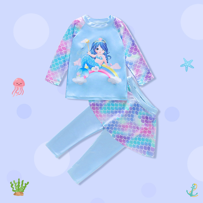 Детские купальники Брюки с длинными рукавами для девочек Солнцезащитные купальники Детские быстросохнущие Купальники-русалки для девочек