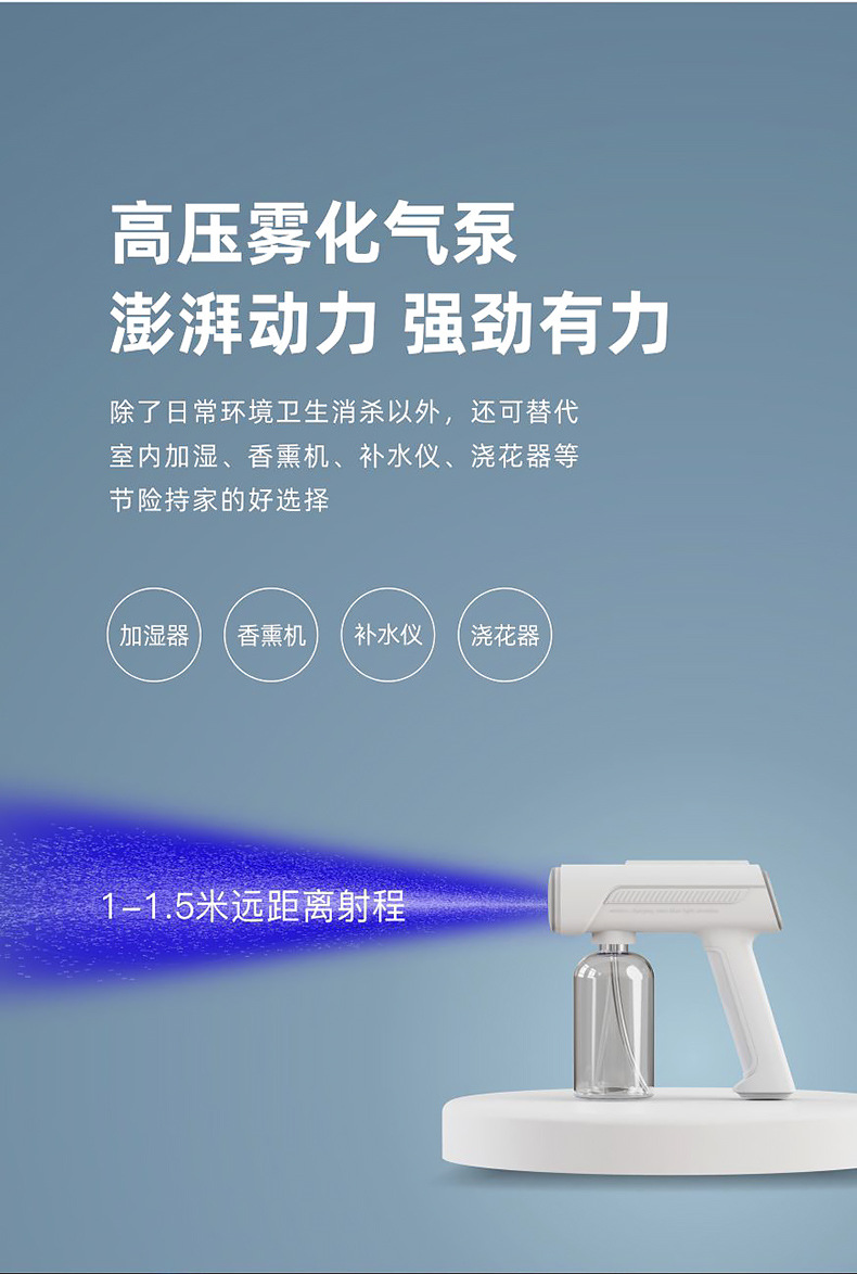 Не незабудите дезинфицирующий пистолет, беспроводной ручной распылитель синего света, бытовой распылитель, подходит для дезинфицирующего средства 84, гипохлористой кислоты