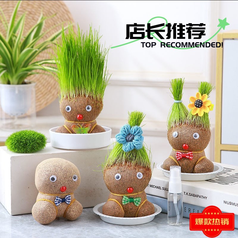 Кукла с травяной головой, креативное мини-зеленое растение, комнатное растение в горшке, детский маленький подарок, длинная травяная кукла