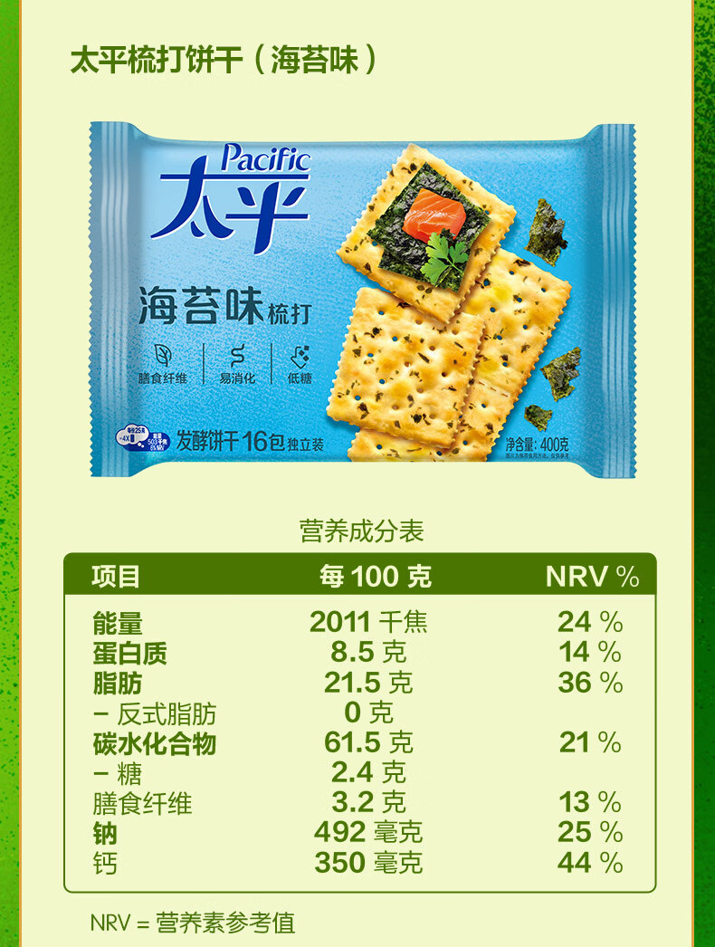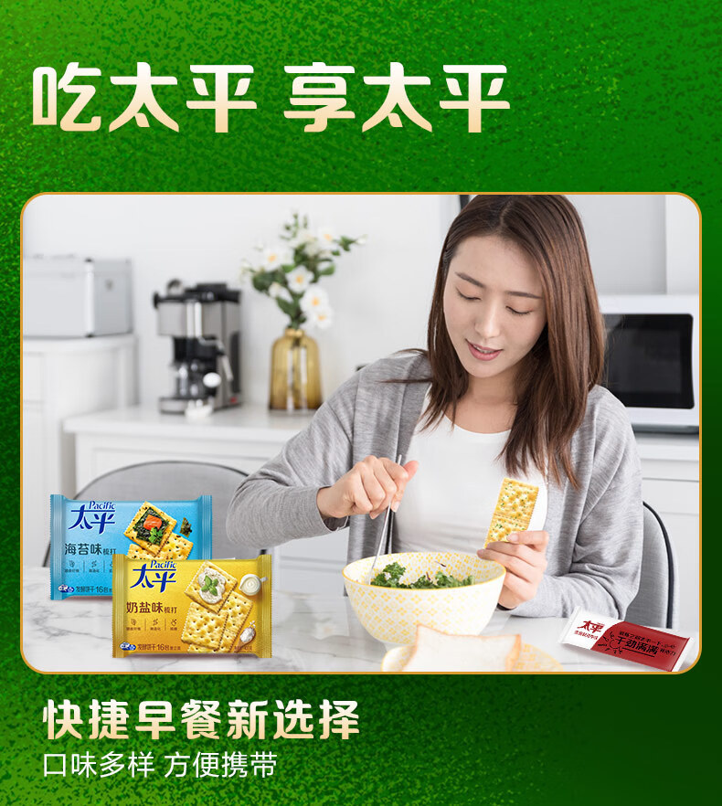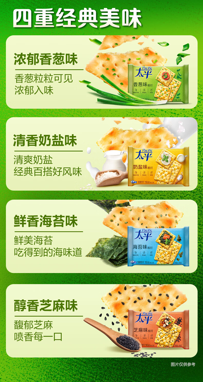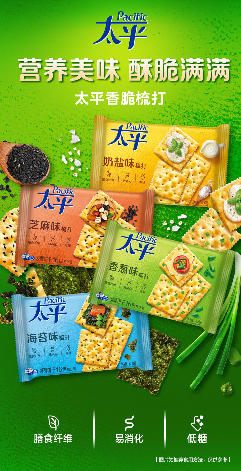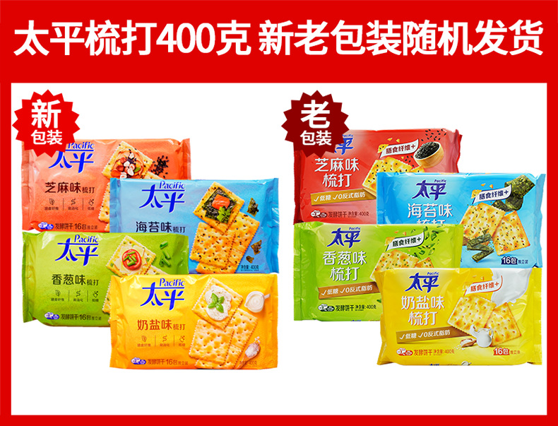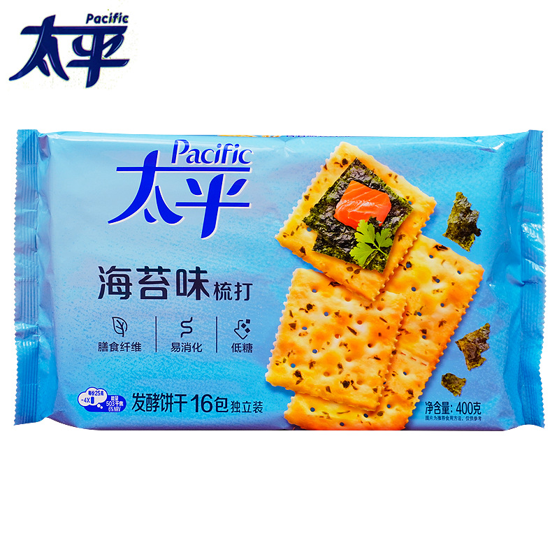 Крекеры Mondelēz Taiping, 400 г/упаковка, со вкусом зелени, молока, соли, морских водорослей и кунжута, для завтрака и перекуса