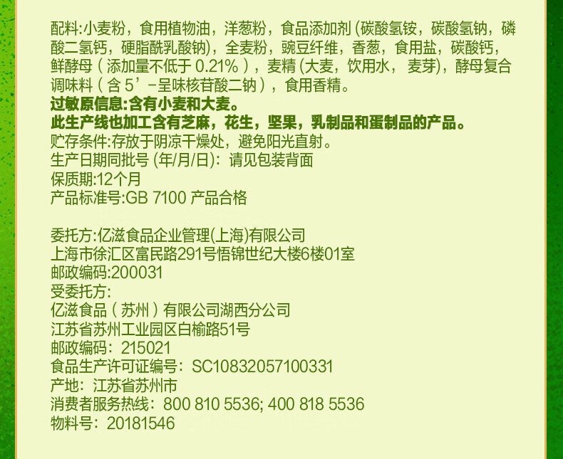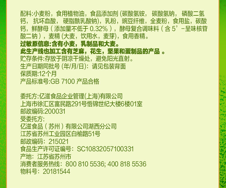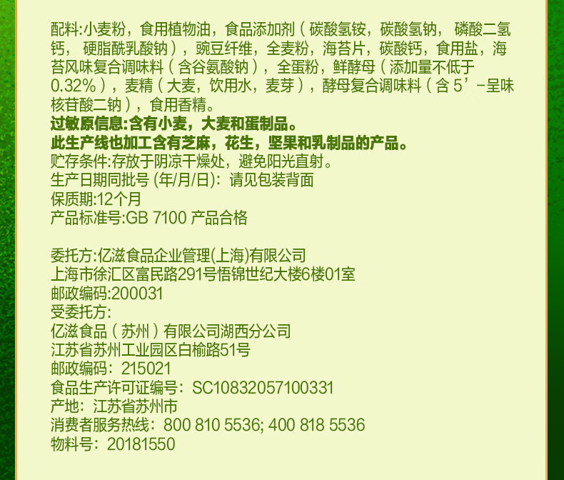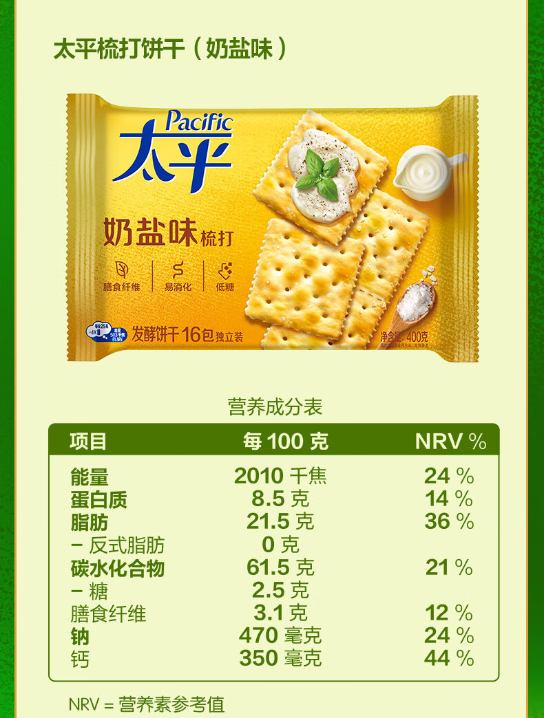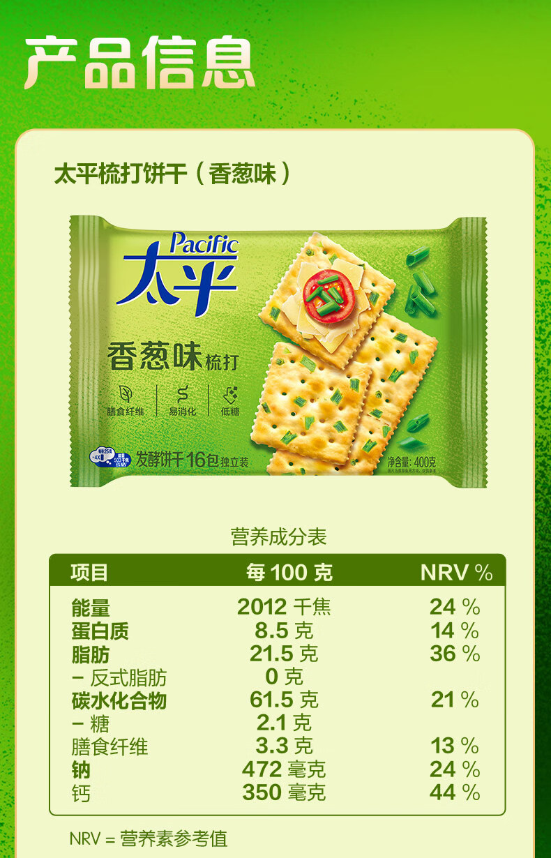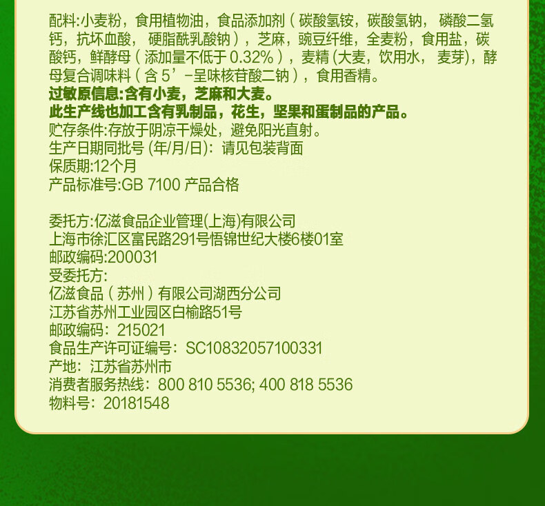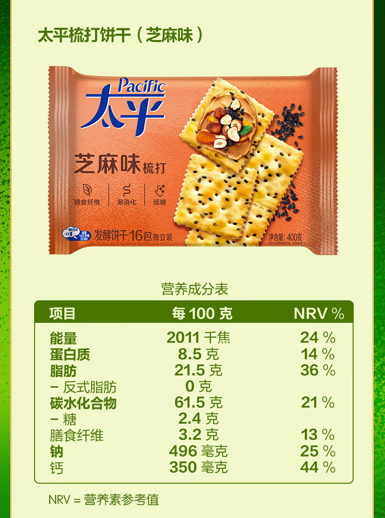 Крекеры Mondelēz Taiping, 400 г/упаковка, со вкусом зелени, молока, соли, морских водорослей и кунжута, для завтрака и перекуса
