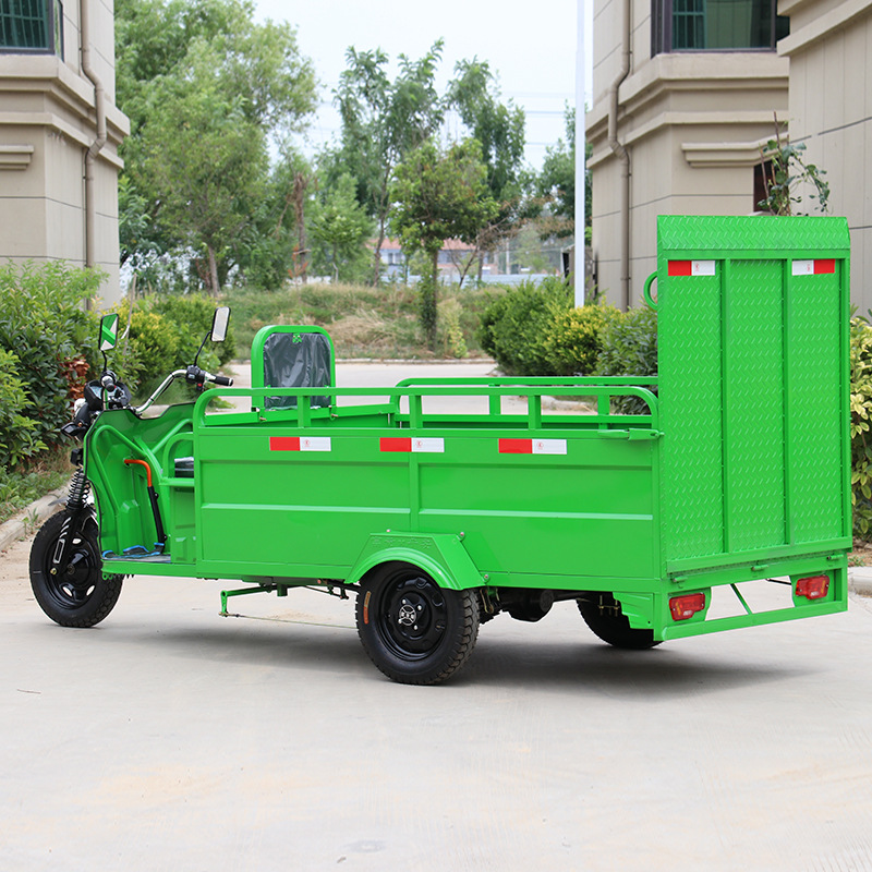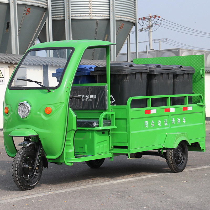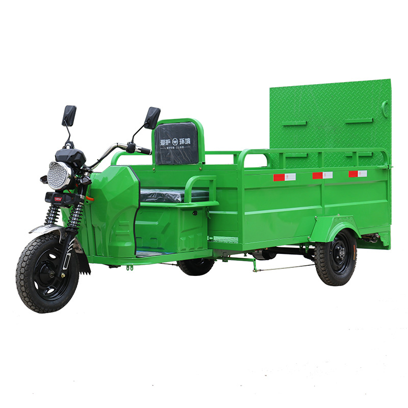 Шестикорпусный электрический трицикл с плоской платформой для уборки улиц и сортировки мусорных баков в муниципальных зонах, транспортное средство для муниципальных санитарных перевозок.