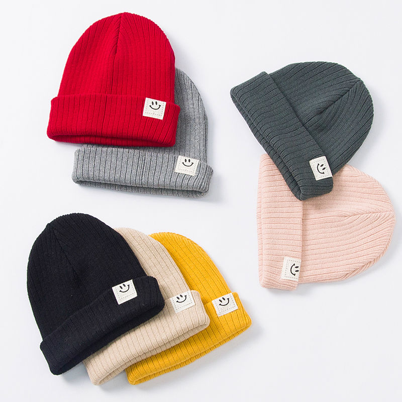 Детская весенне-Осенняя детская шапка-пуловер, вязаная универсальная мужская и женская теплая шапка с носком в Корейском стиле со смайликом