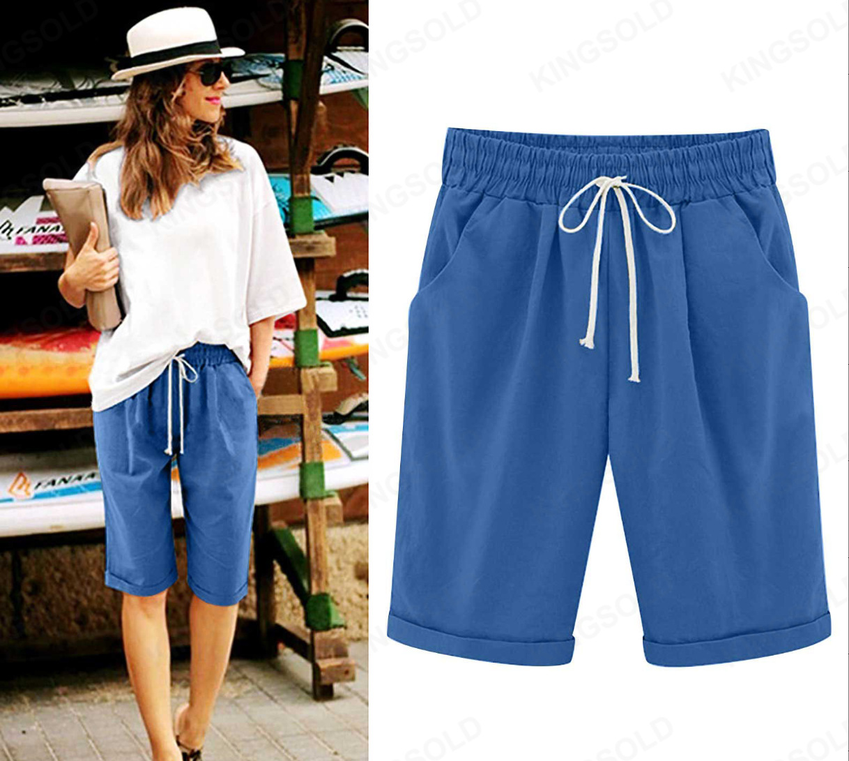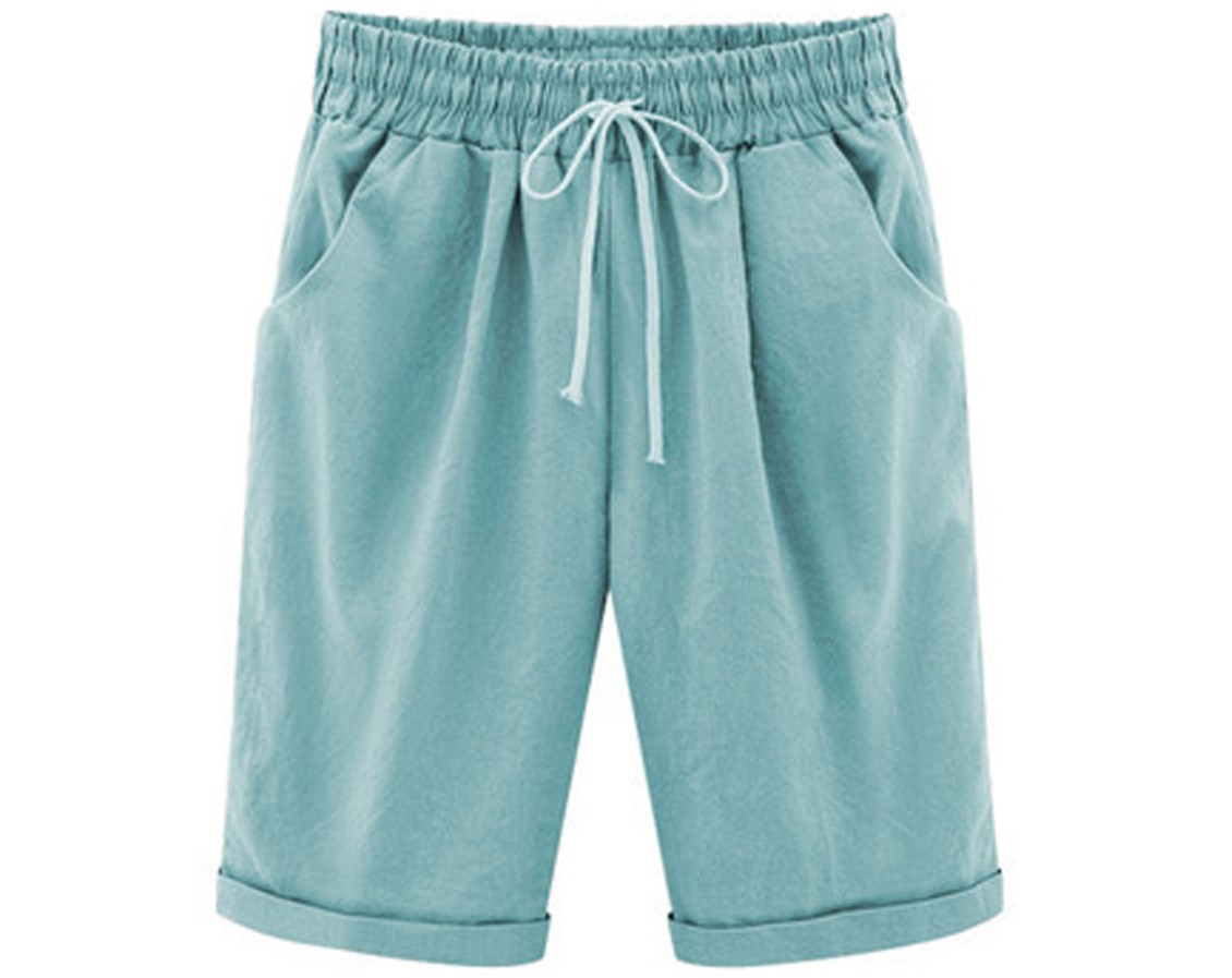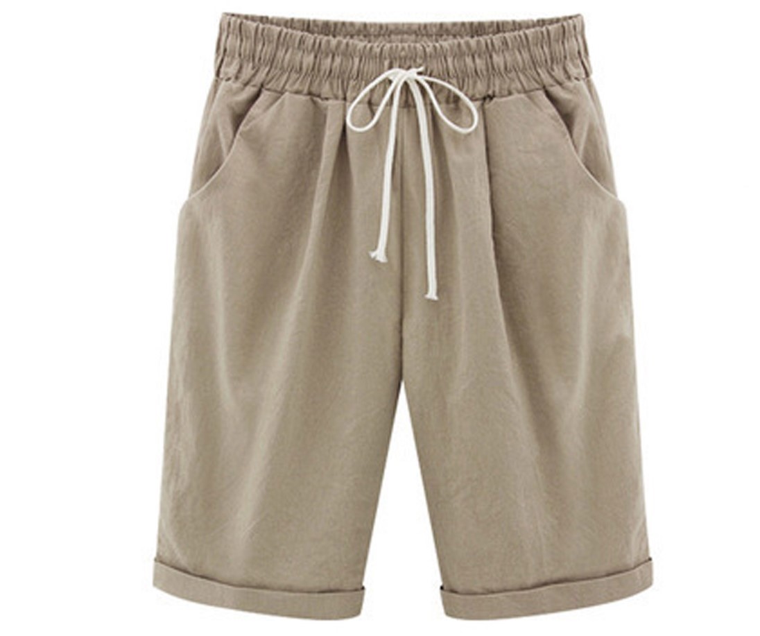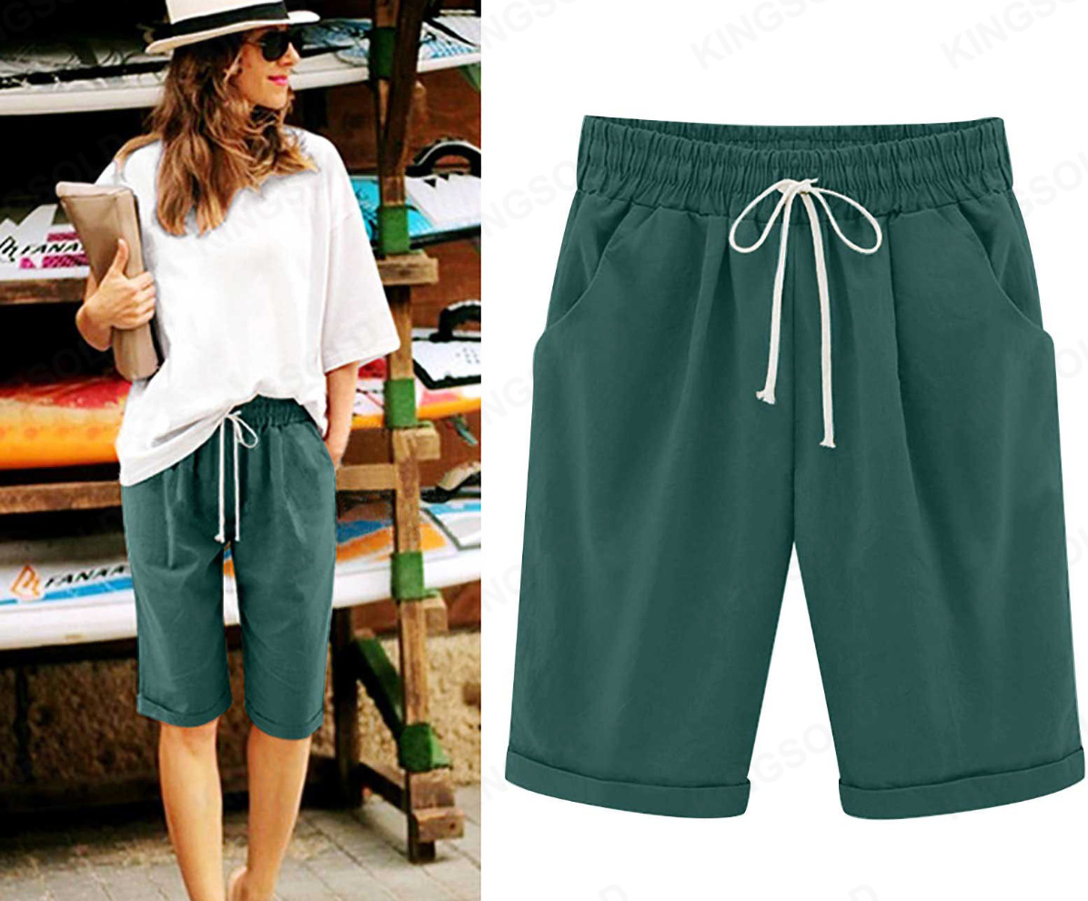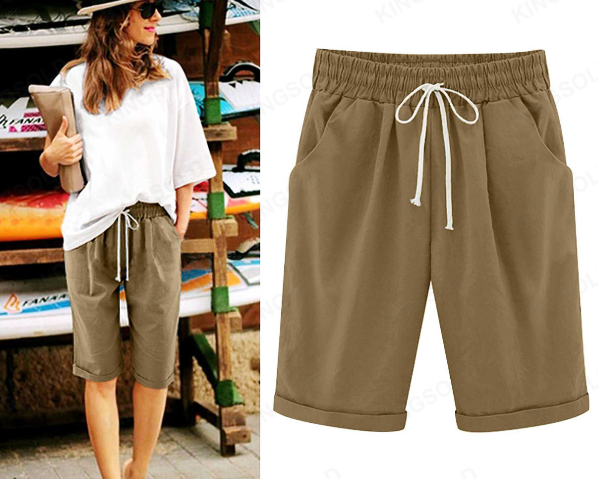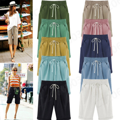 Трансграничная Внешняя торговля Amazon, горячие продажи, летние повседневные брюки для полных девочек, женские пятые брюки, верхняя одежда, средние брюки, большие размеры, свободные женские