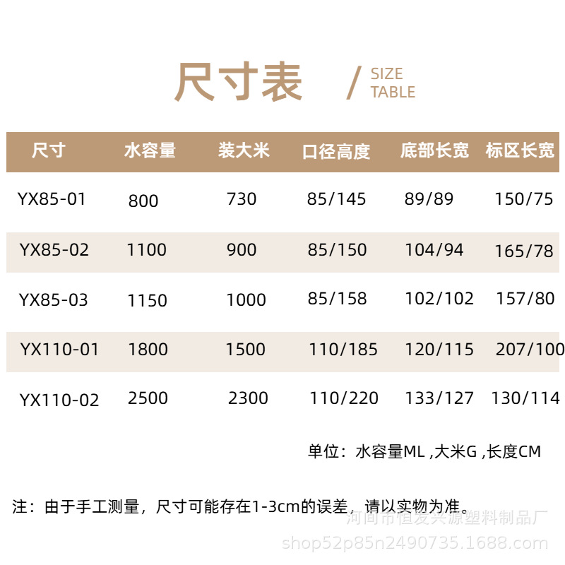 800мл 270шт/коробка YX85-01; 1000 мл 160 шт./кор. YX85-02; 1150 мл 160 шт./кор. YX85-03; 1800 мл 84 шт./кор. YX110-01; 2500 мл 72 шт./кор. YX110-02