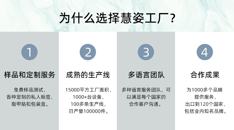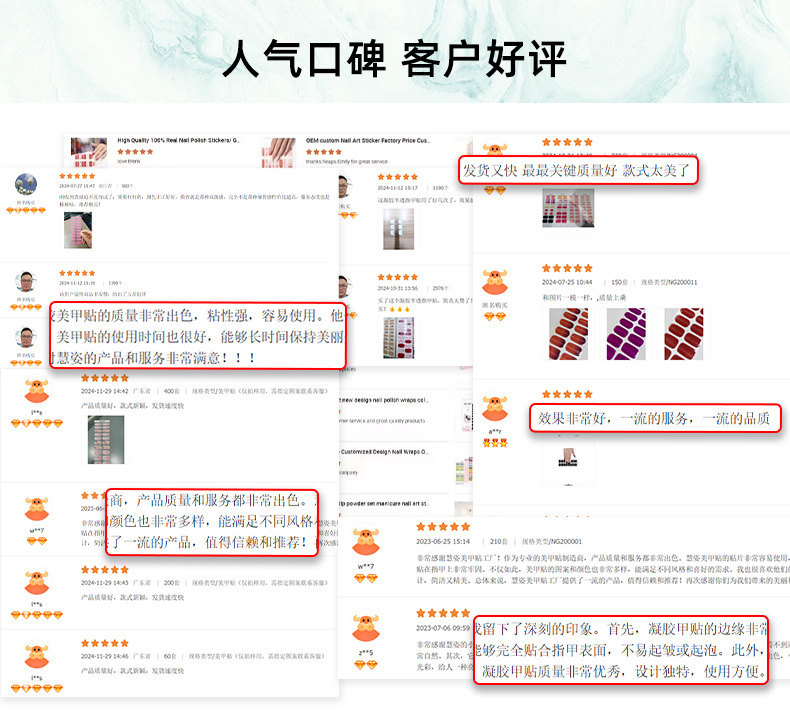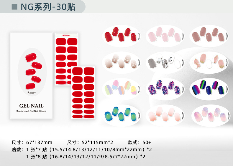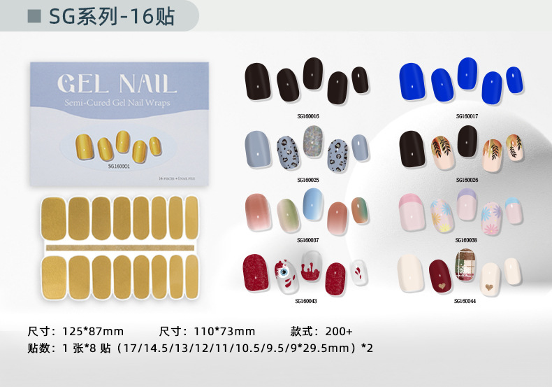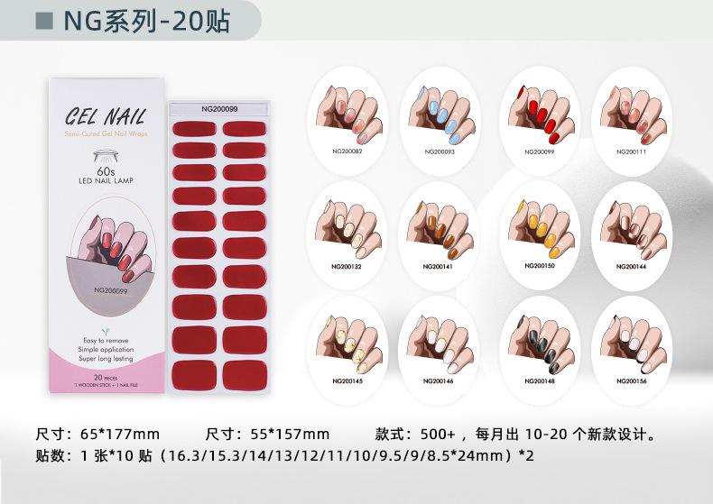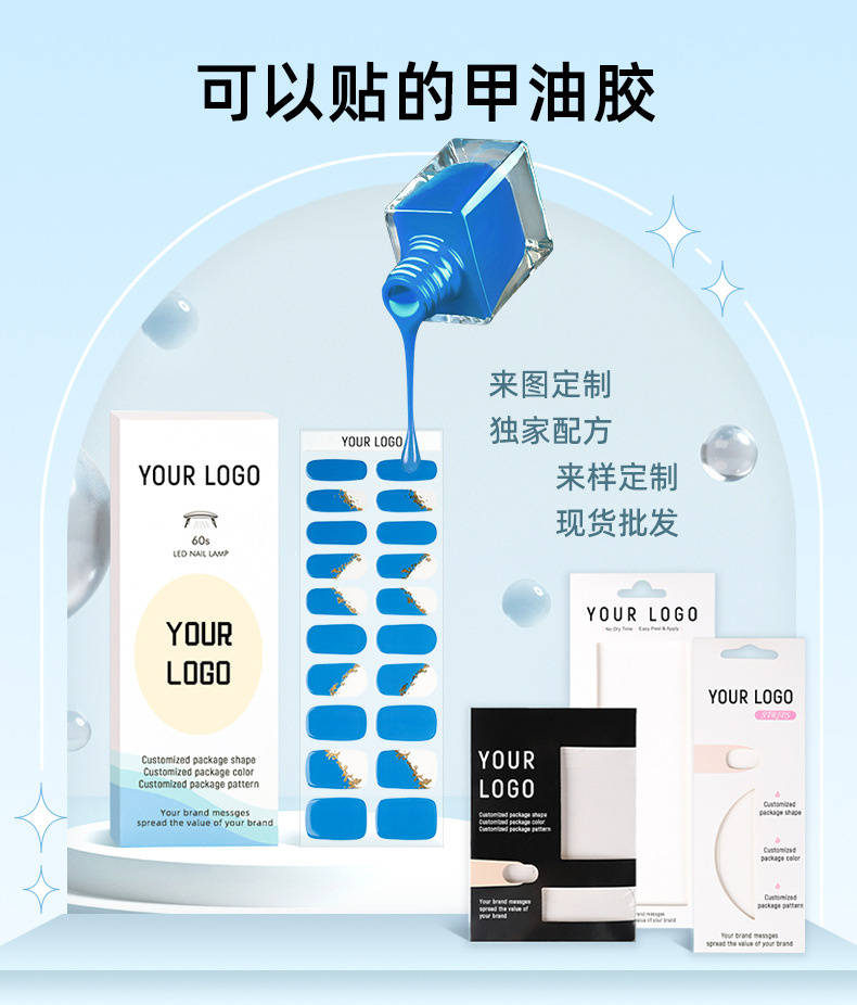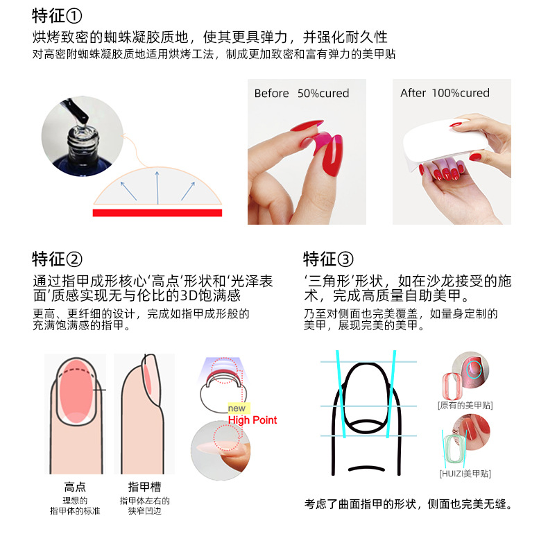 凝胶美甲不是一般的普通塑料美甲贴,是由甲油胶成分制作而成的,照灯后更亮且环保 SGS、FDA认证