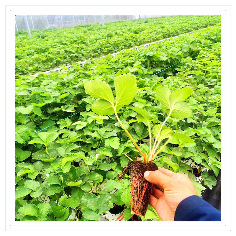 1法兰地草莓苗是南方露天和大棚栽培的选品种,大棚栽培的草莓含糖量能达到10度以上。法兰地草莓苗在广东广西种植面积广,基本达到95%。不仅含糖量高,它的外形也十分讨人喜欢。它的果形大,平均单果重达到50至83克。另外颜色非常漂亮、鲜艳。法兰地草莓苗的果实呈扁圆锥形,颜色鲜红,果型美观、果个匀称,上市时间早,一般9月上旬种,11月中旬就能收获。法兰地草莓苗叶片比一般草莓大,呈浓绿色,所以光合作用好,丰产性好。另外它的一次果、二次果、三次果都非常整齐,非常均匀。所以法兰地产量非常高,每亩栽培8000株苗可以产草莓4000至5000斤。法兰地草莓苗可以在南、北方栽培,也可以在保护地、露地栽培,它的适应性非常广。法兰地草莓苗在保护地栽培基本不用打农药,所以是一个抗性、抗逆性十分突出的品种。缺点法兰地的味道比红颜差,不抗灰霉。